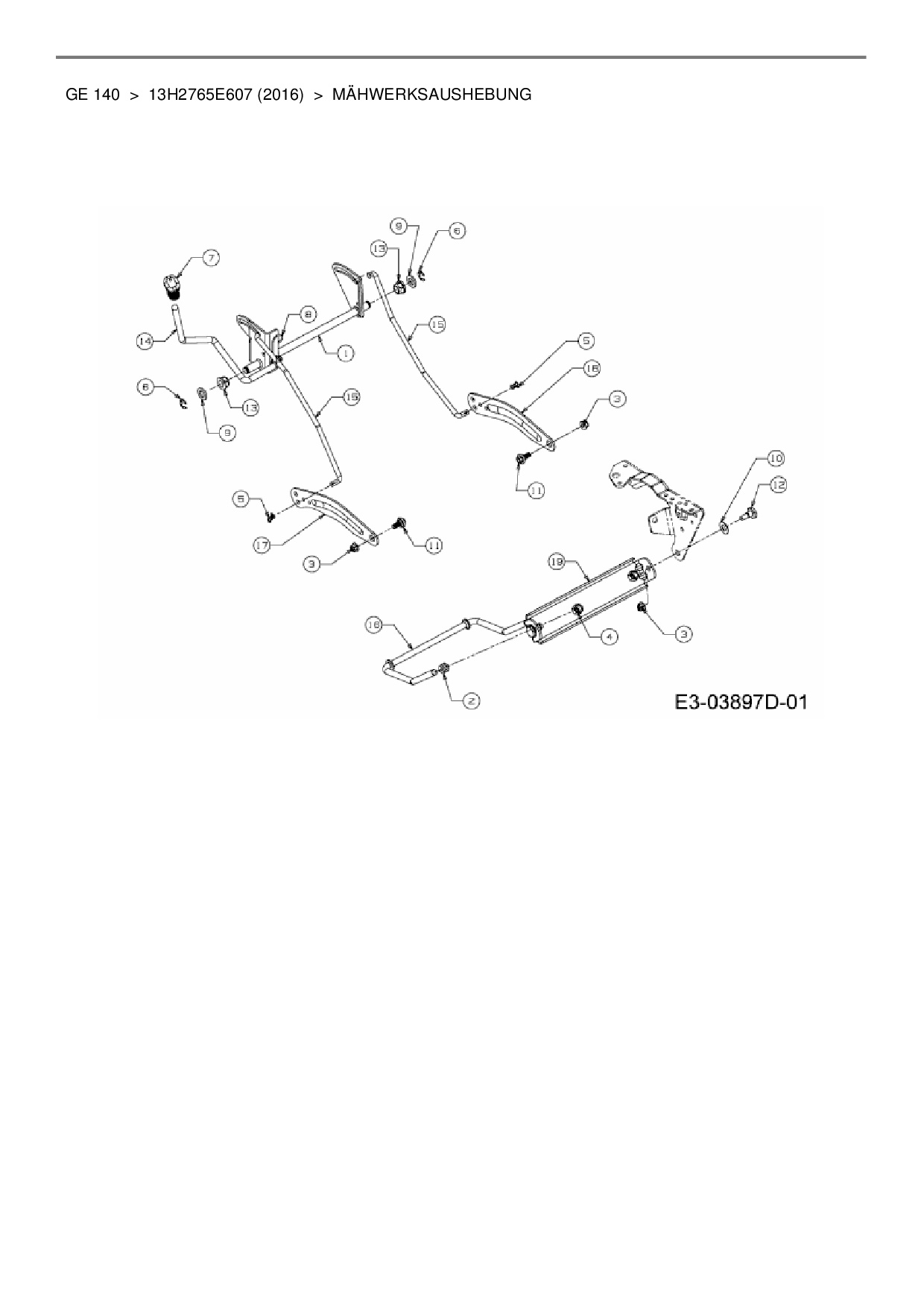 Ersatzteile für Rasentraktor Blisar GE 140 aus der Zeichnung Mähwerksaushebung: