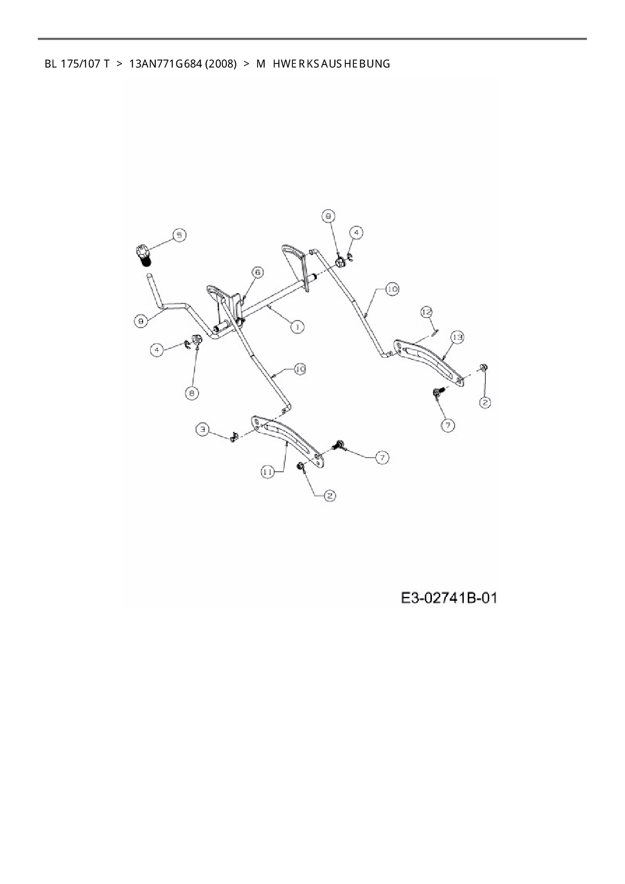 Ersatzteile für Rasentraktor Bolens BL 175/107 T aus der Zeichnung Mähwerksaushebung: