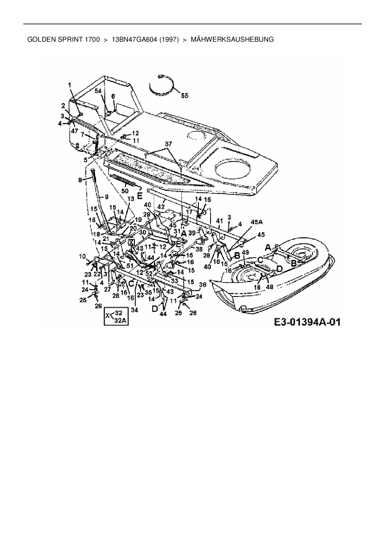 Ersatzteile für Rasentraktor Gutbrod Golden Sprint 1700 aus der Zeichnung Mähwerksaushebung: