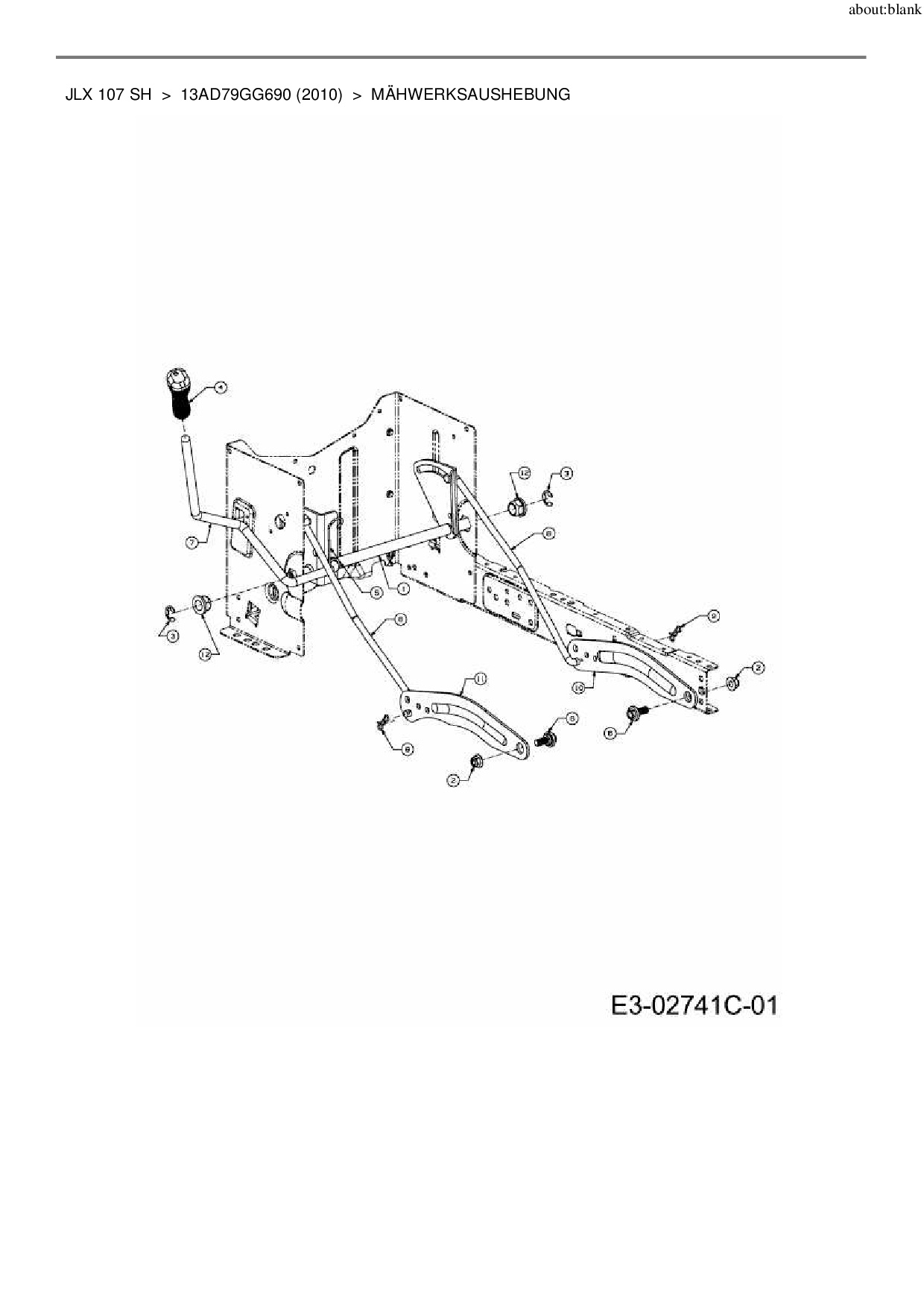 Ersatzteile für Rasentraktor Gutbrod JLX 107 SH aus der Zeichnung Mähwerksaushebung: