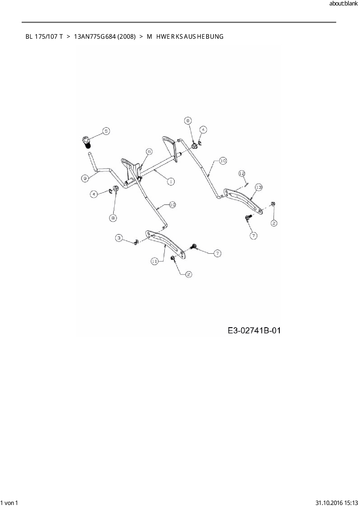 Ersatzteile für Rasentraktor Bolens BL 175/107 T aus der Zeichnung Mähwerksaushebung: