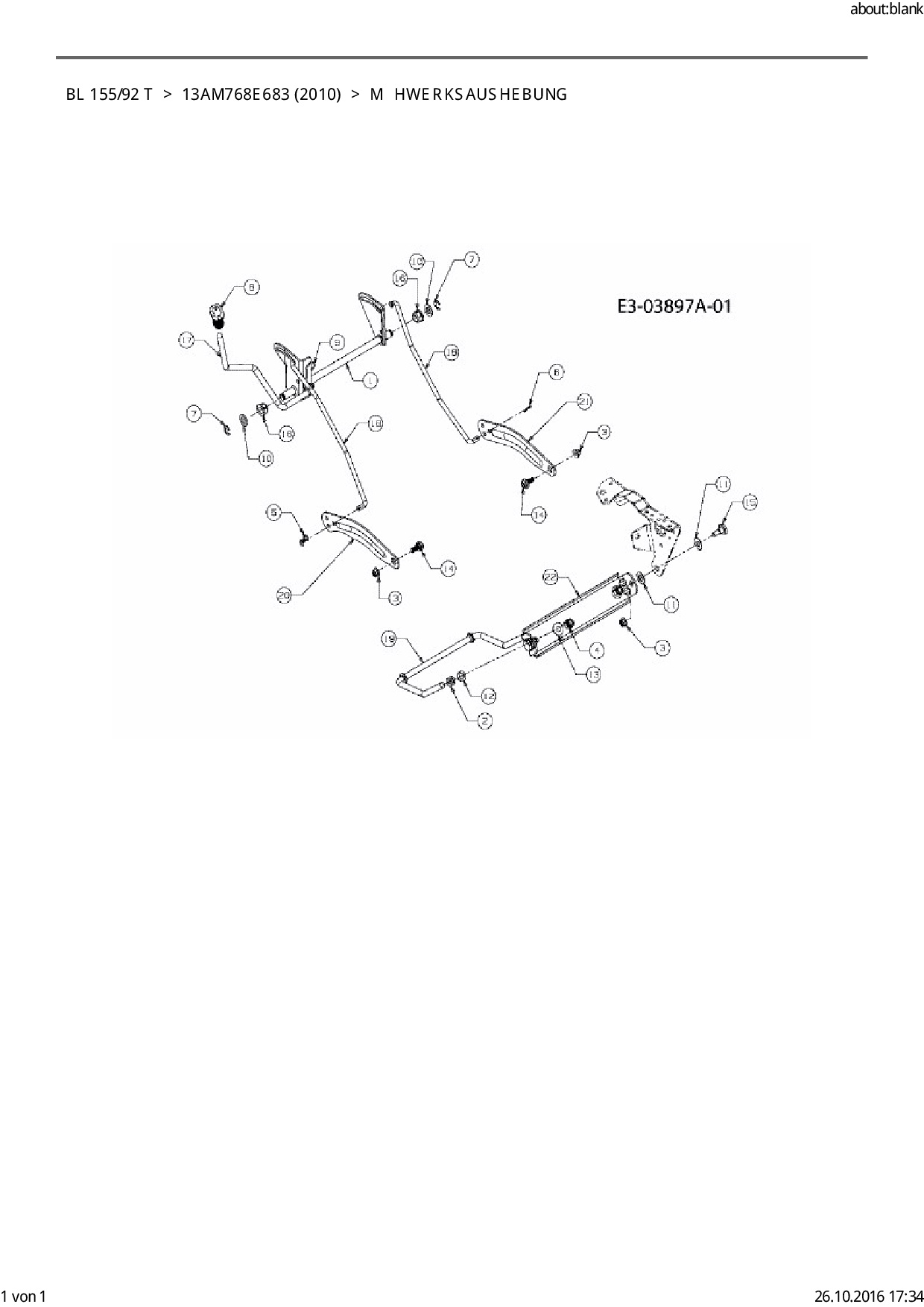 Ersatzteile für Rasentraktor Black-Line BL 155/92 T aus der Zeichnung Mähwerksaushebung: