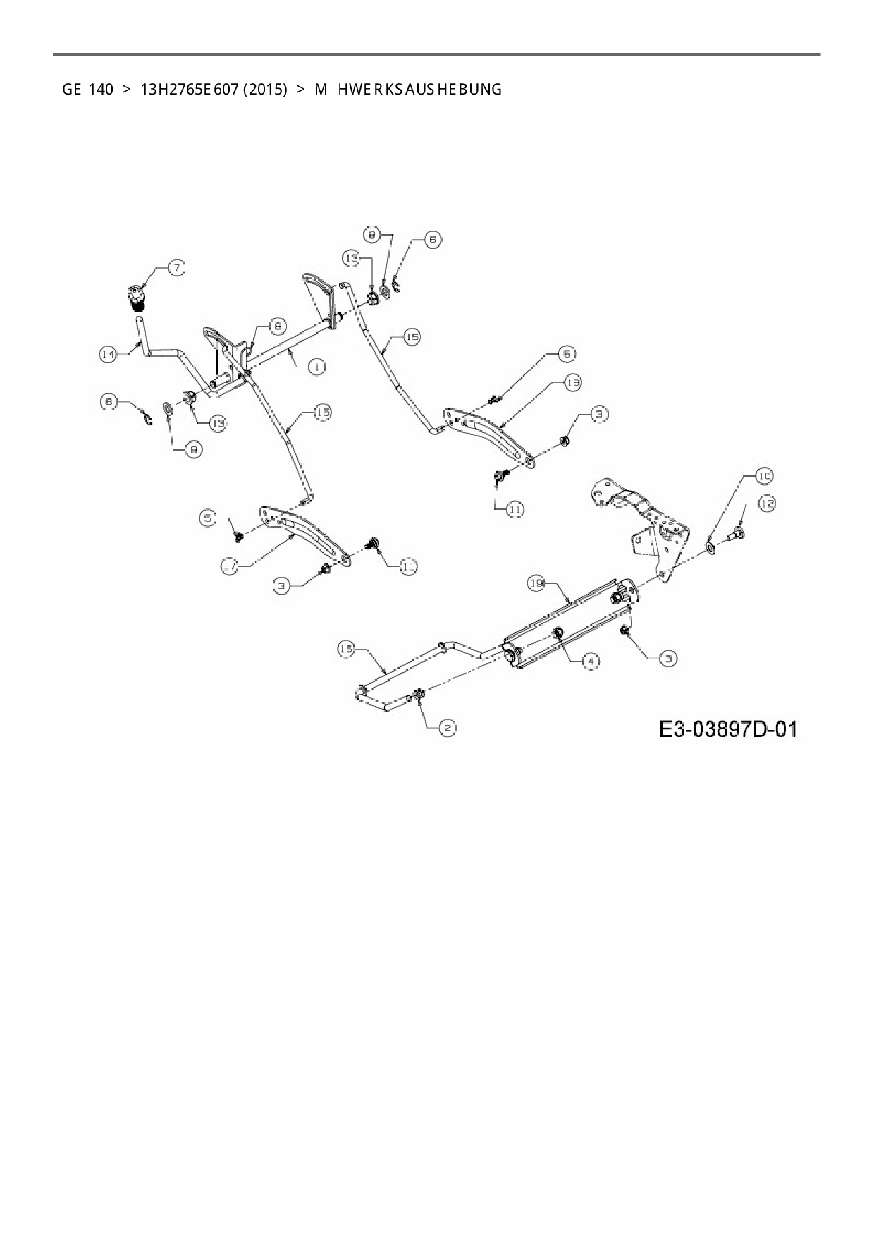 Ersatzteile für Rasentraktor Blisar GE 140 aus der Zeichnung Mähwerksaushebung:
