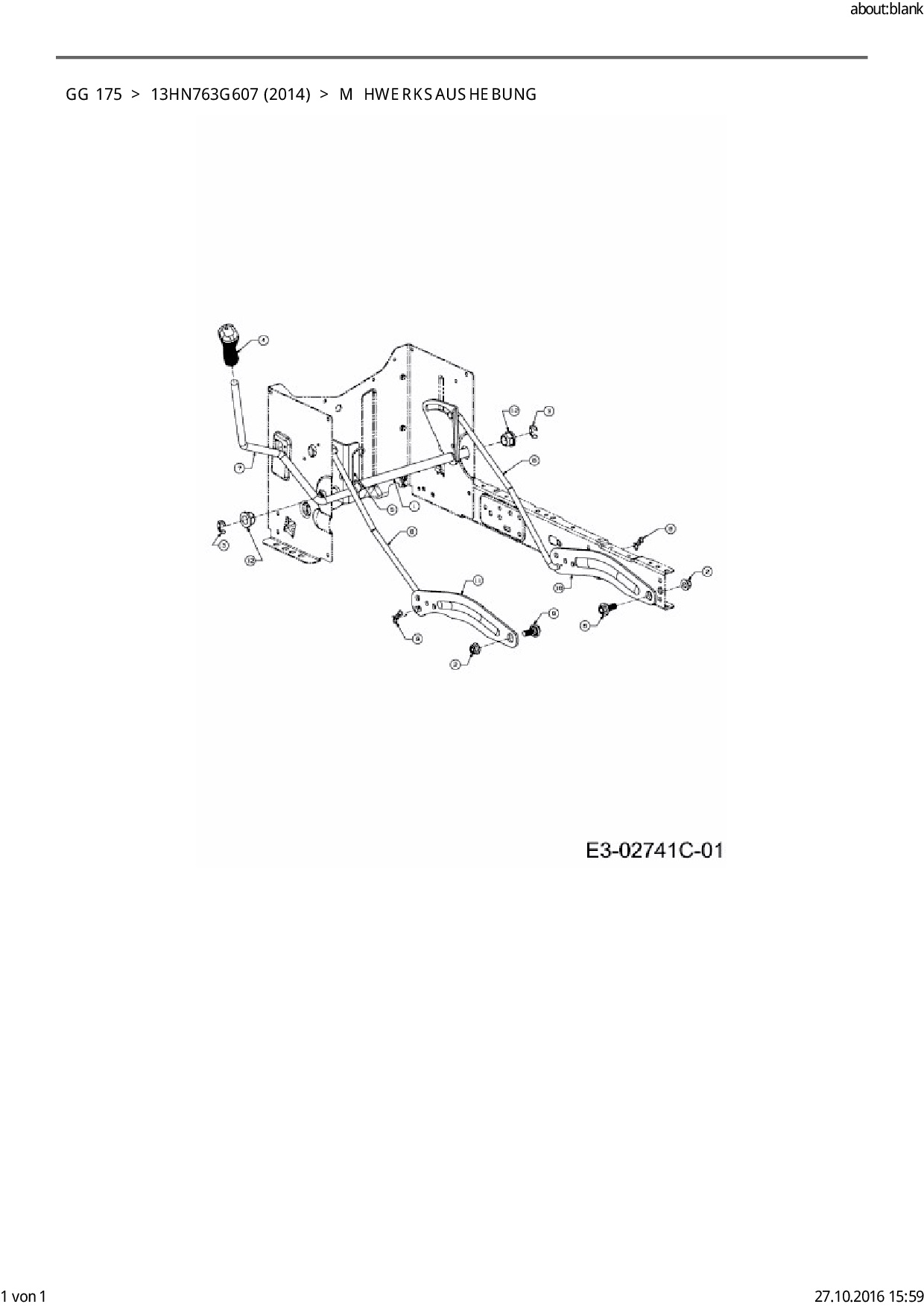 Ersatzteile für Rasentraktor Blisar GG 175 aus der Zeichnung Mähwerksaushebung: