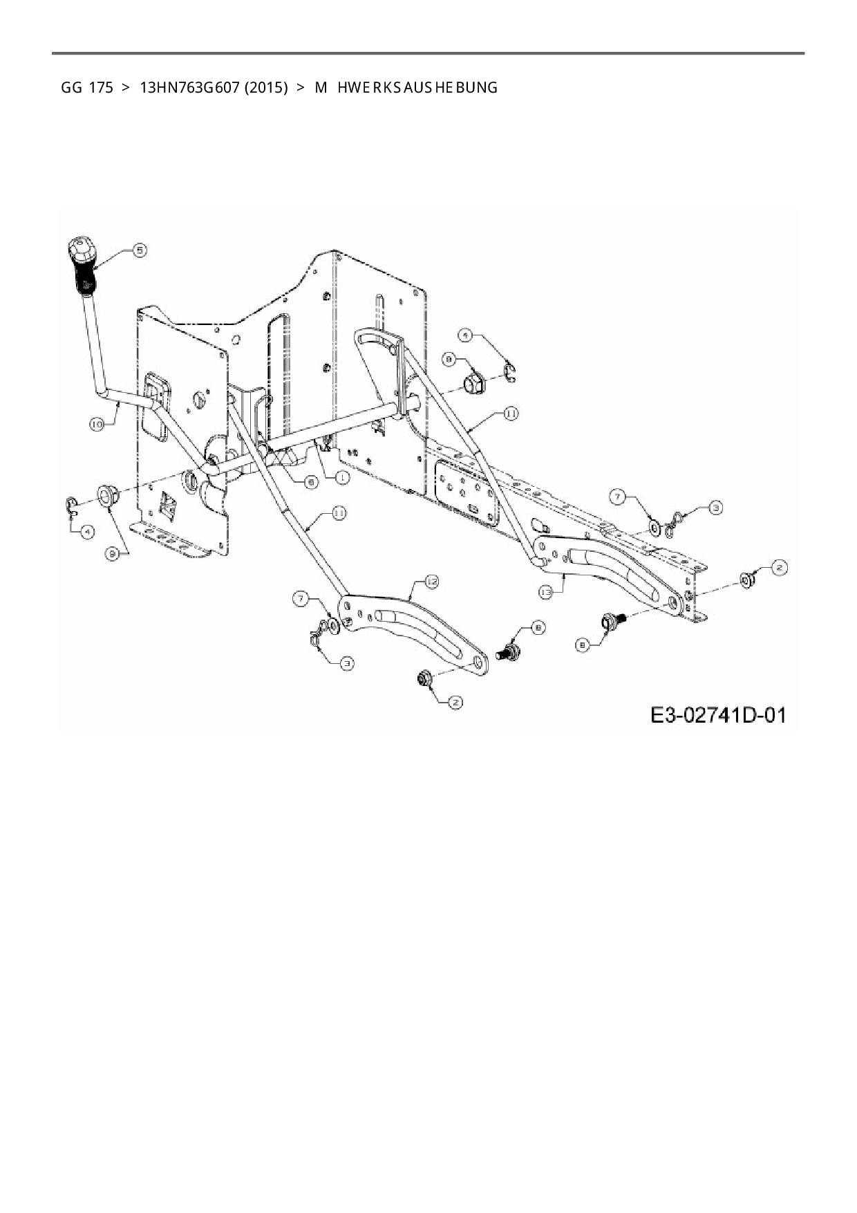 Ersatzteile für Rasentraktor Blisar GG 175 aus der Zeichnung Mähwerksaushebung: