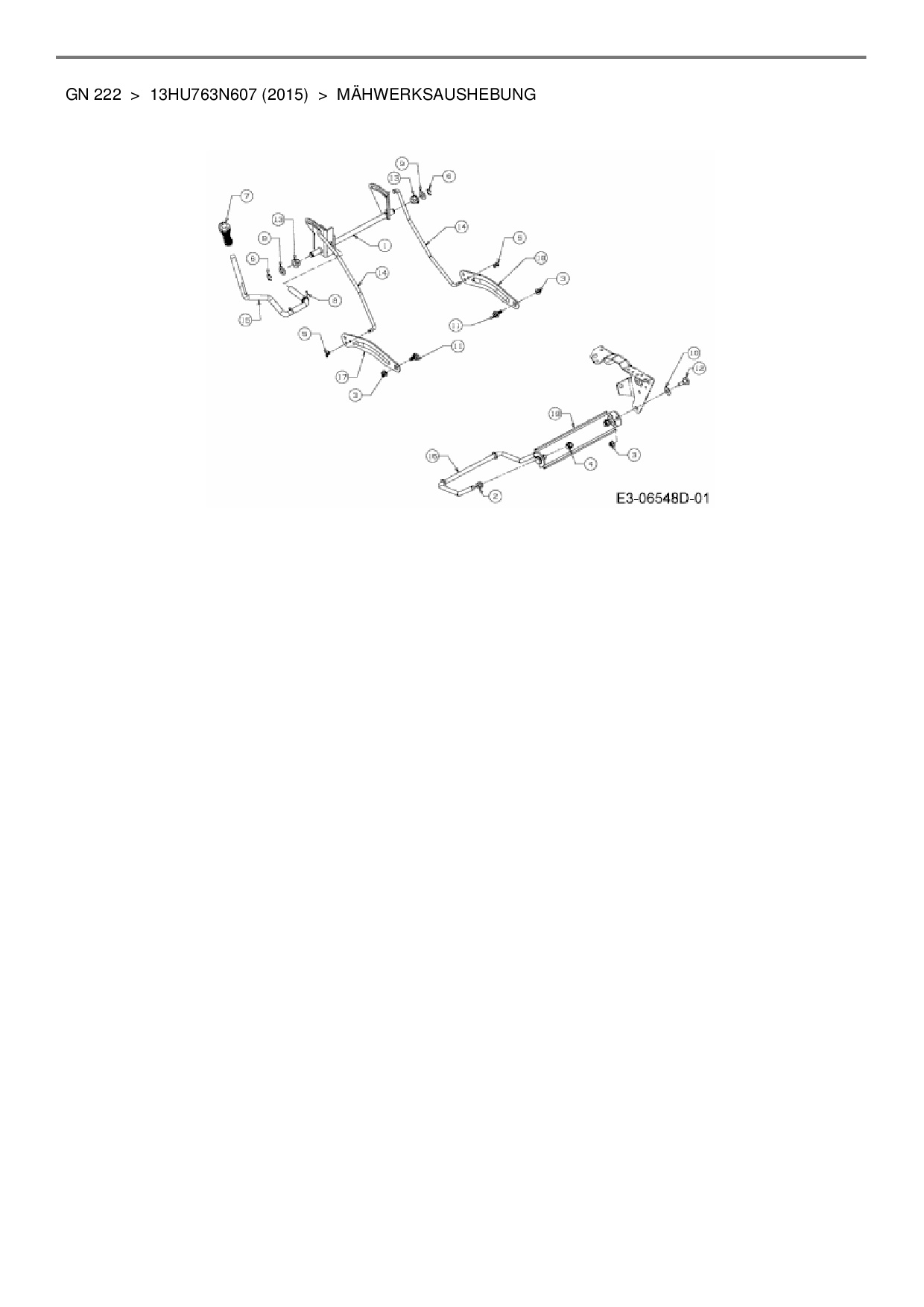Ersatzteile für Rasentraktor Blisar GN 222 aus der Zeichnung Mähwerksaushebung: