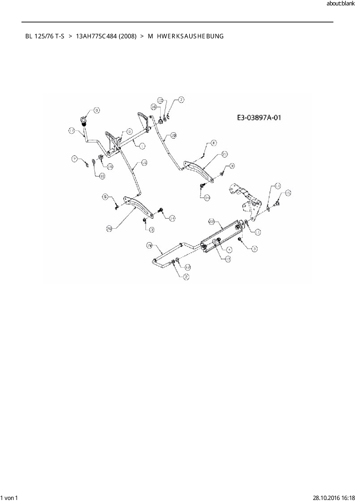 Ersatzteile für Rasentraktor Bolens BL 125/76 T-S aus der Zeichnung Mähwerksaushebung: