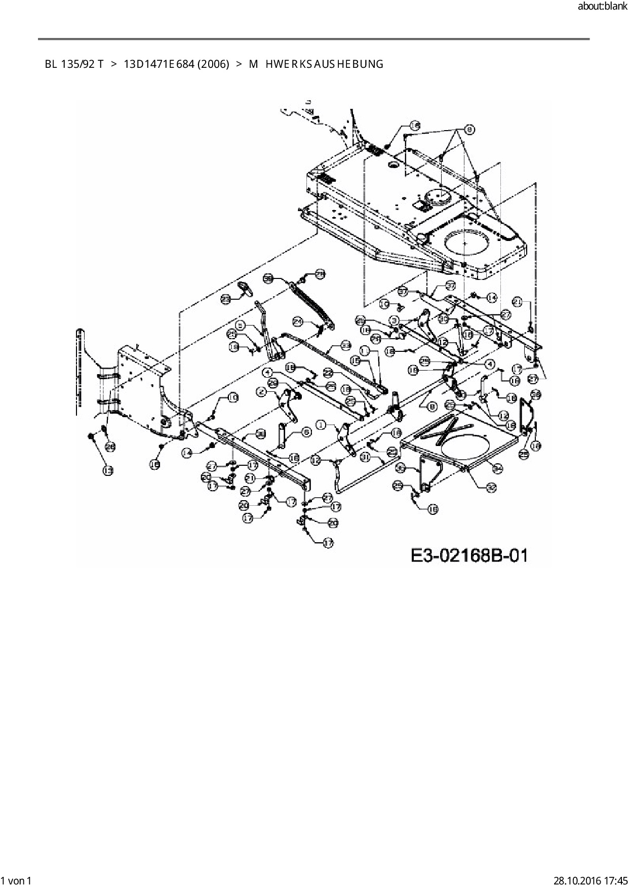 Ersatzteile für Rasentraktor Bolens BL 135/92 T aus der Zeichnung Mähwerksaushebung: