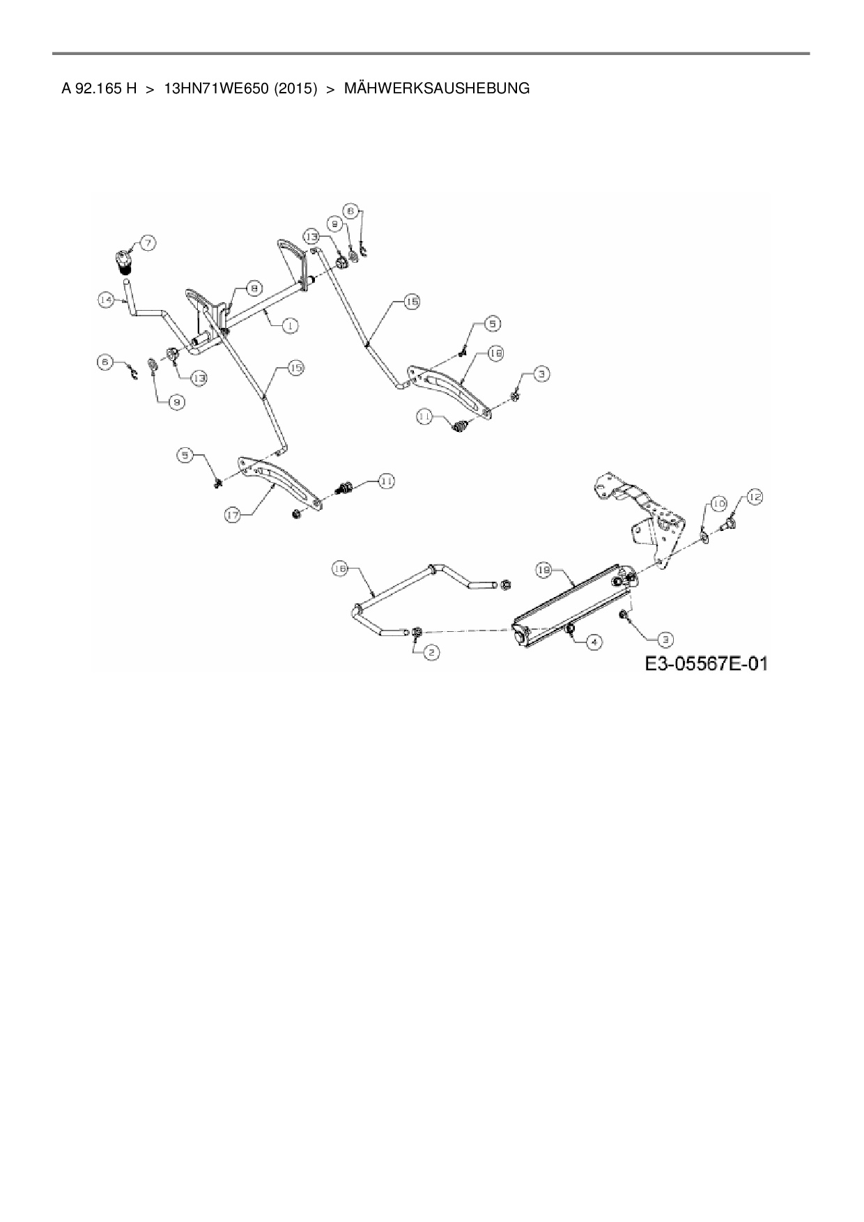 Ersatzteile für Rasentraktor Wolf-Garten A 92.165 H aus der Zeichnung Mähwerksaushebung: