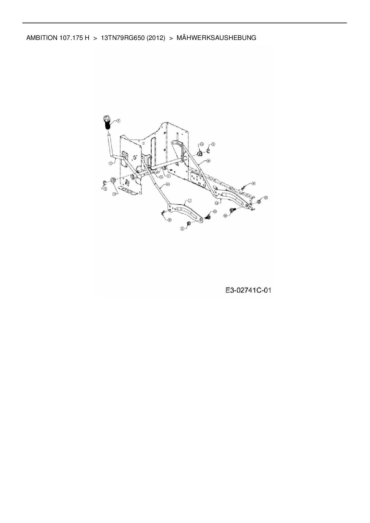 Download Ersatzteil-Zeichnung Wolf-Garten Ambition 107.175 H Zeichnung Mähwerksaushebung (PDF-Format)