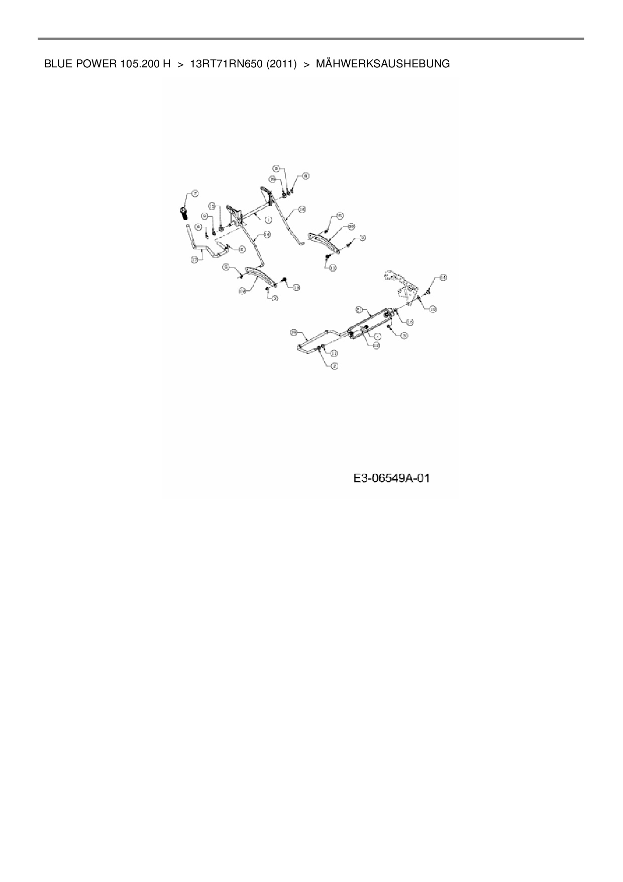 Ersatzteile für Rasentraktor Wolf-Garten Blue Power 105.200 H aus der Zeichnung Mähwerksaushebung: