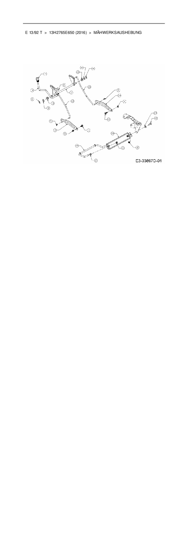 Ersatzteile für Rasentraktor Wolf-Garten E 13/92 T aus der Zeichnung Mähwerksaushebung: