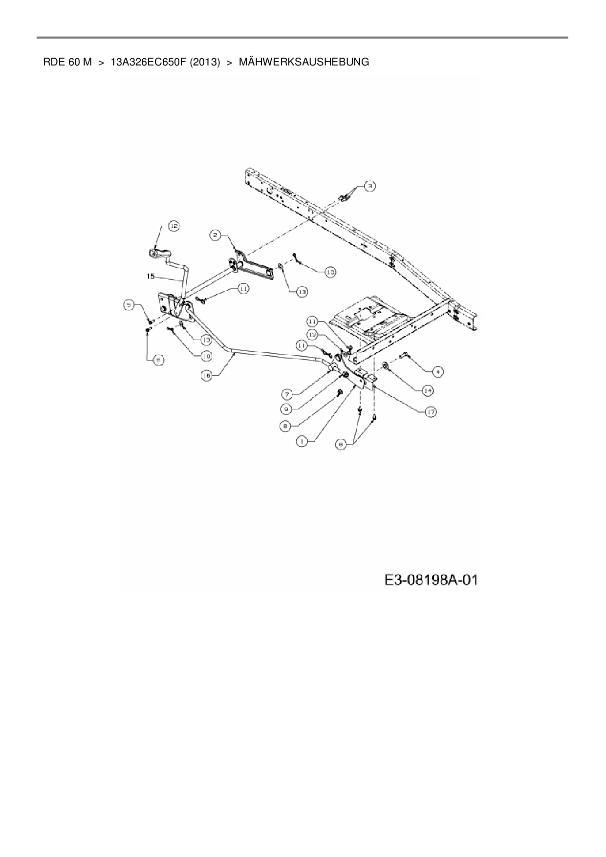 Ersatzteile für Rasentraktor Wolf-Garten RDE 60 M aus der Zeichnung Mähwerksaushebung: