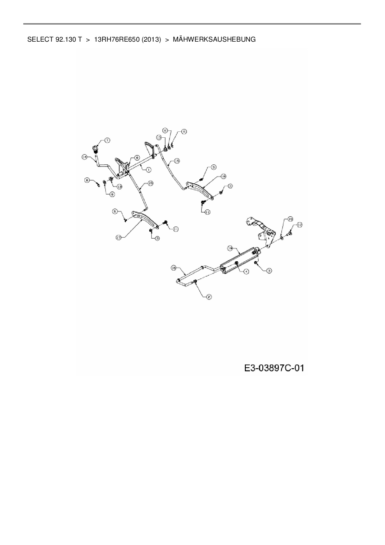 Download Ersatzteil-Zeichnung Wolf-Garten Select 92.130 T Zeichnung Mähwerksaushebung (PDF-Format)