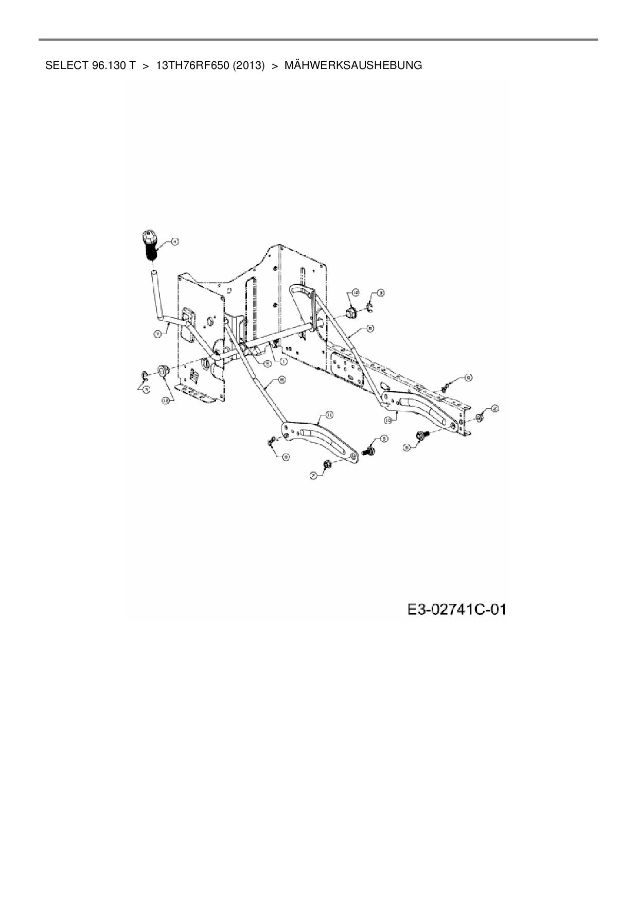 Download Ersatzteil-Zeichnung Wolf-Garten Select 96.130 T Zeichnung Mähwerksaushebung (PDF-Format)