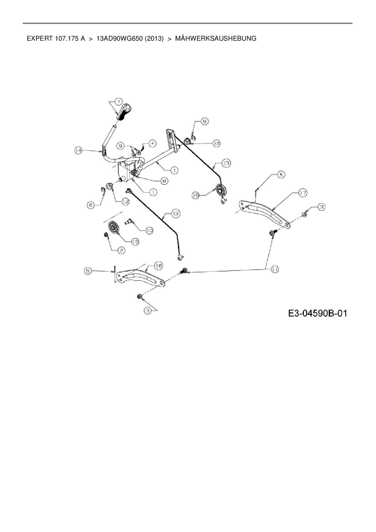 Ersatzteile für Rasentraktor Wolf-Garten Expert Expert 107.175 A aus der Zeichnung Mähwerksaushebung:
