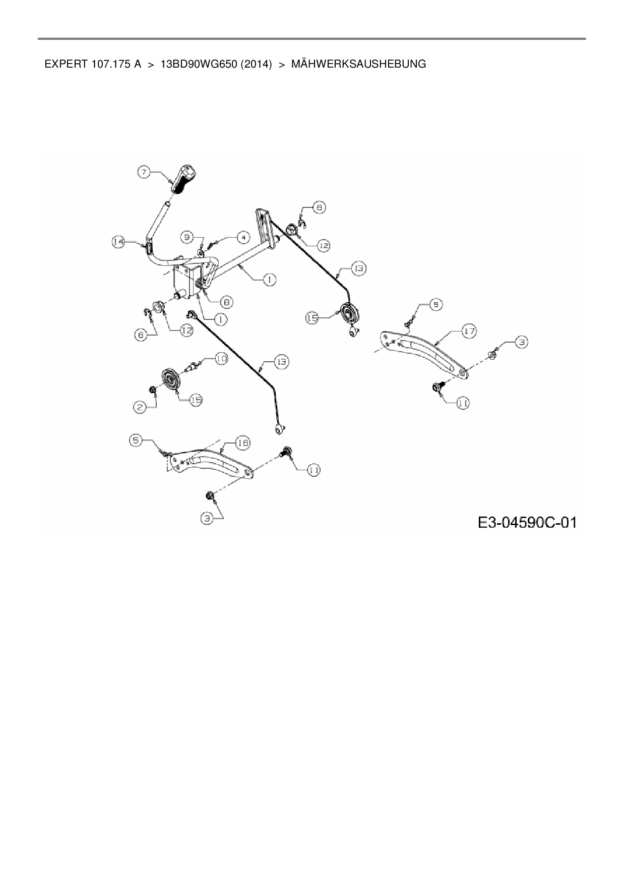 Ersatzteile für Rasentraktor Wolf-Garten Expert Expert 107.175 A aus der Zeichnung Mähwerksaushebung: