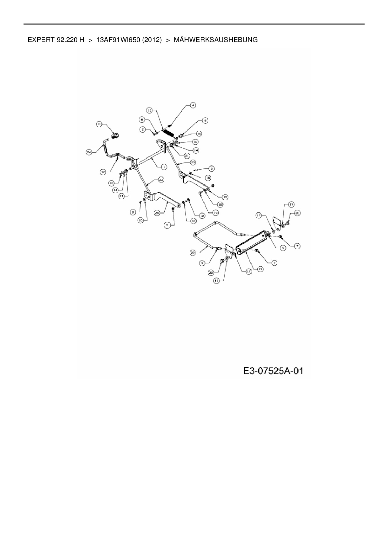 Ersatzteile für Rasentraktor Wolf-Garten Expert Expert 92.220 H aus der Zeichnung Mähwerksaushebung: