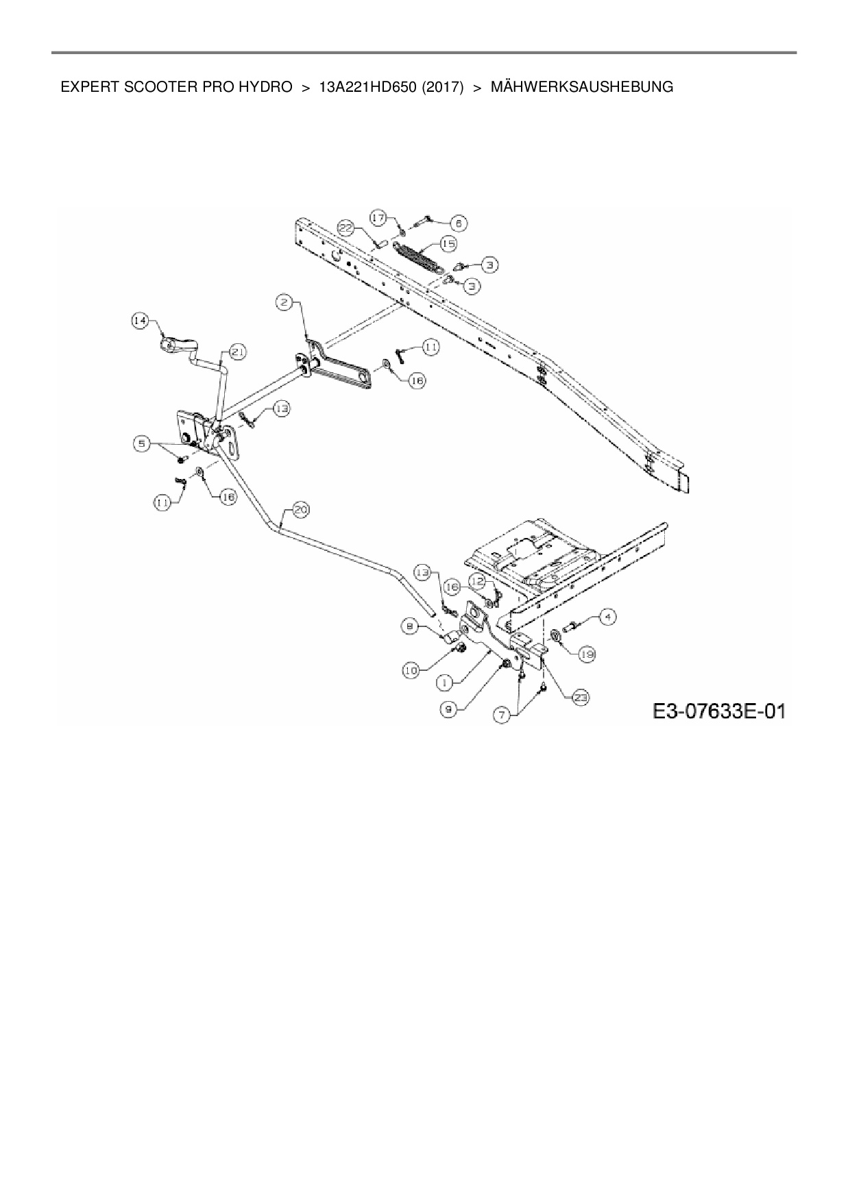 Ersatzteile für Rasentraktor Wolf-Garten Expert Expert Scooter Pro Hydro aus der Zeichnung Mähwerksaushebung: