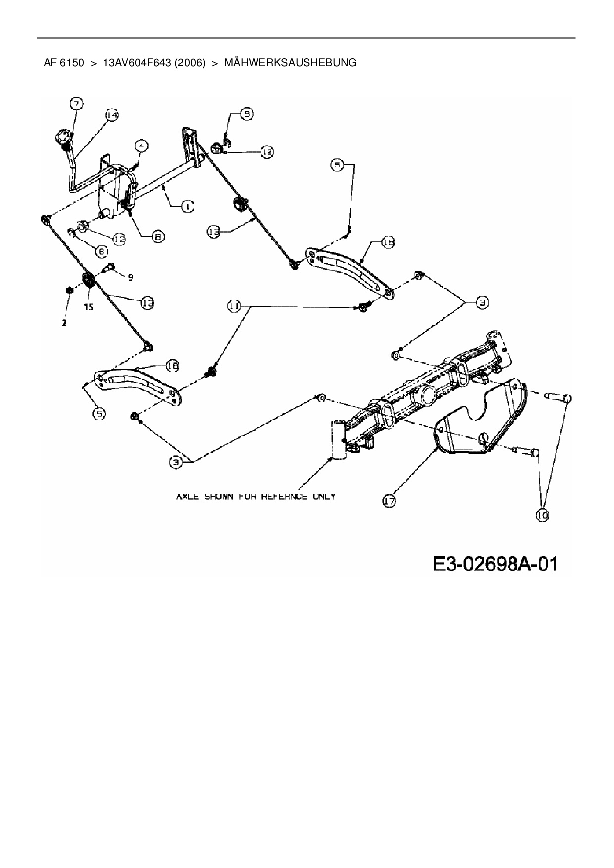 Ersatzteile für Rasentraktor Yard-Man AF 6150 aus der Zeichnung Mähwerksaushebung: