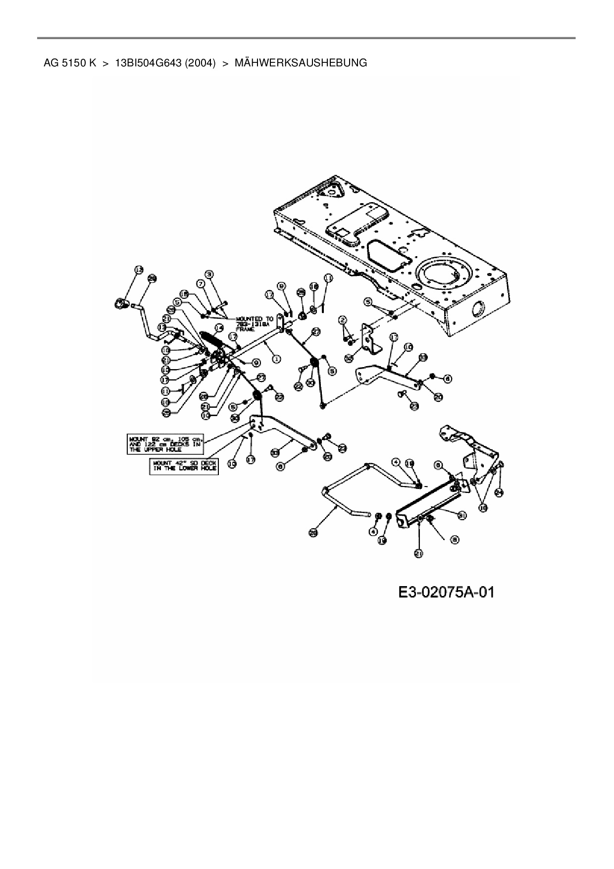 Ersatzteile für Rasentraktor Yard-Man AG 5150 K aus der Zeichnung Mähwerksaushebung: