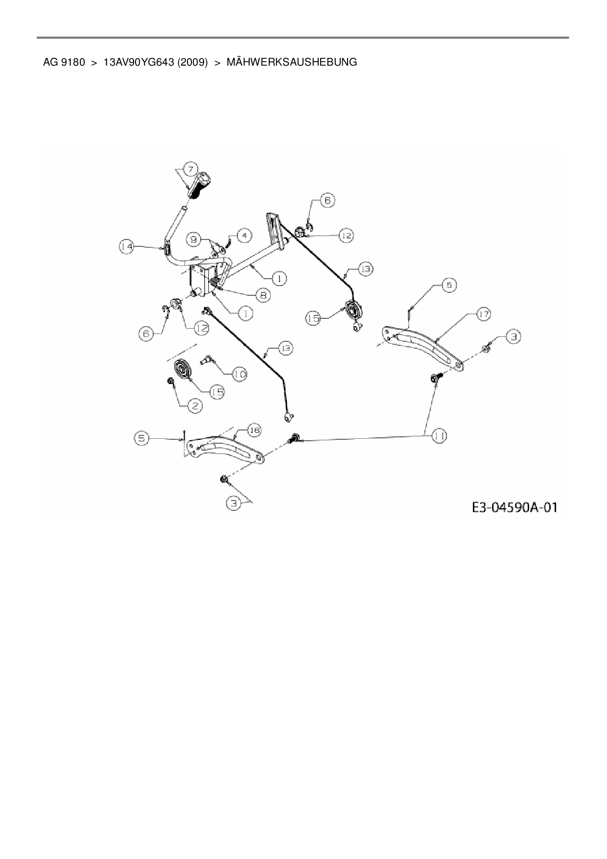 Ersatzteile für Rasentraktor Yard-Man AG 9180 aus der Zeichnung Mähwerksaushebung:
