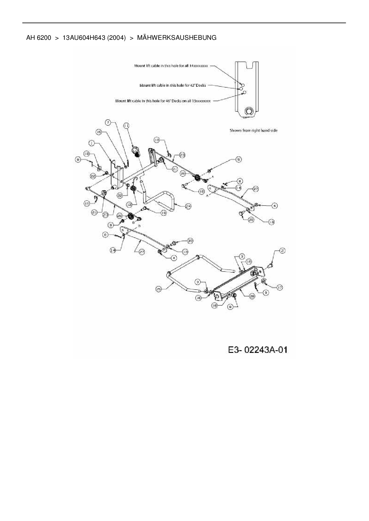 Ersatzteile für Rasentraktor Yard-Man AH 6200 aus der Zeichnung Mähwerksaushebung: