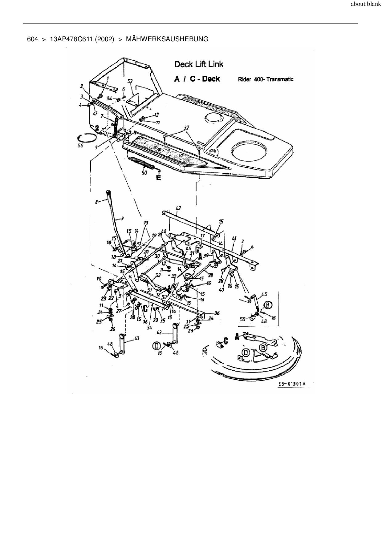Zeichnung für Lawnflite Rasentraktor 604 mit der Geräte-Artikelnr. 13AP478C611 ab Baujahr 2002: