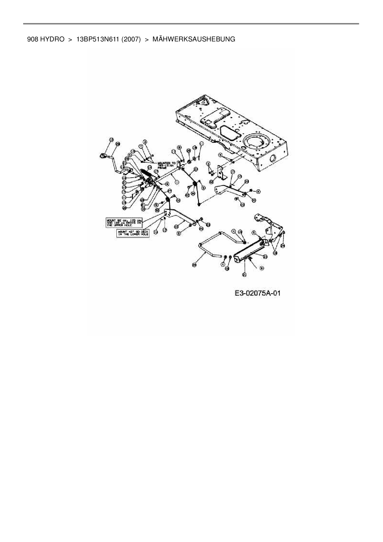 Ersatzteile für Rasentraktor Lawnflite 908 Hydro aus der Zeichnung Mähwerksaushebung: