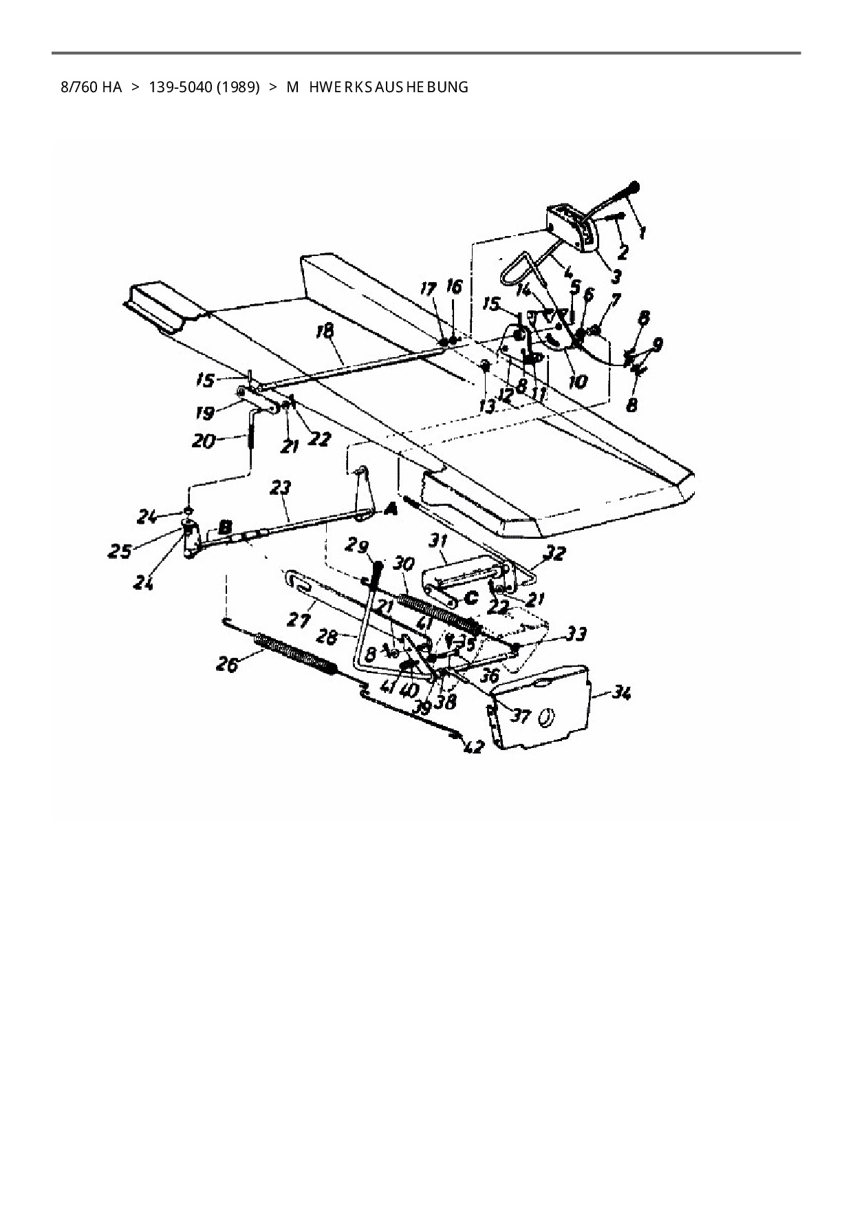 Download Ersatzteil-Zeichnung Columbia 8/760 HA Zeichnung Mähwerksaushebung (PDF-Format)