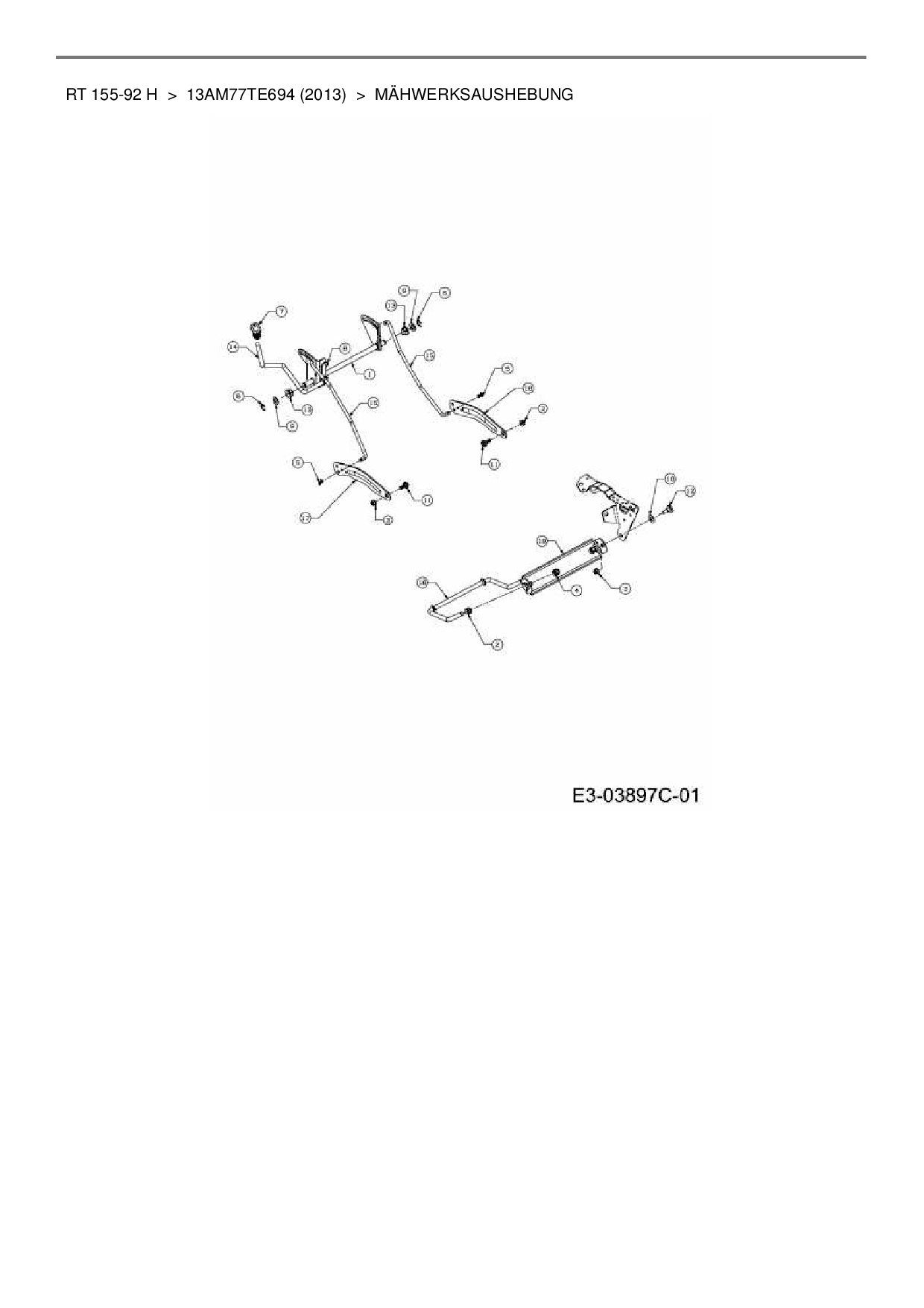 Ersatzteile für Rasentraktor Lux Tools RT 155-92 H aus der Zeichnung Mähwerksaushebung:
