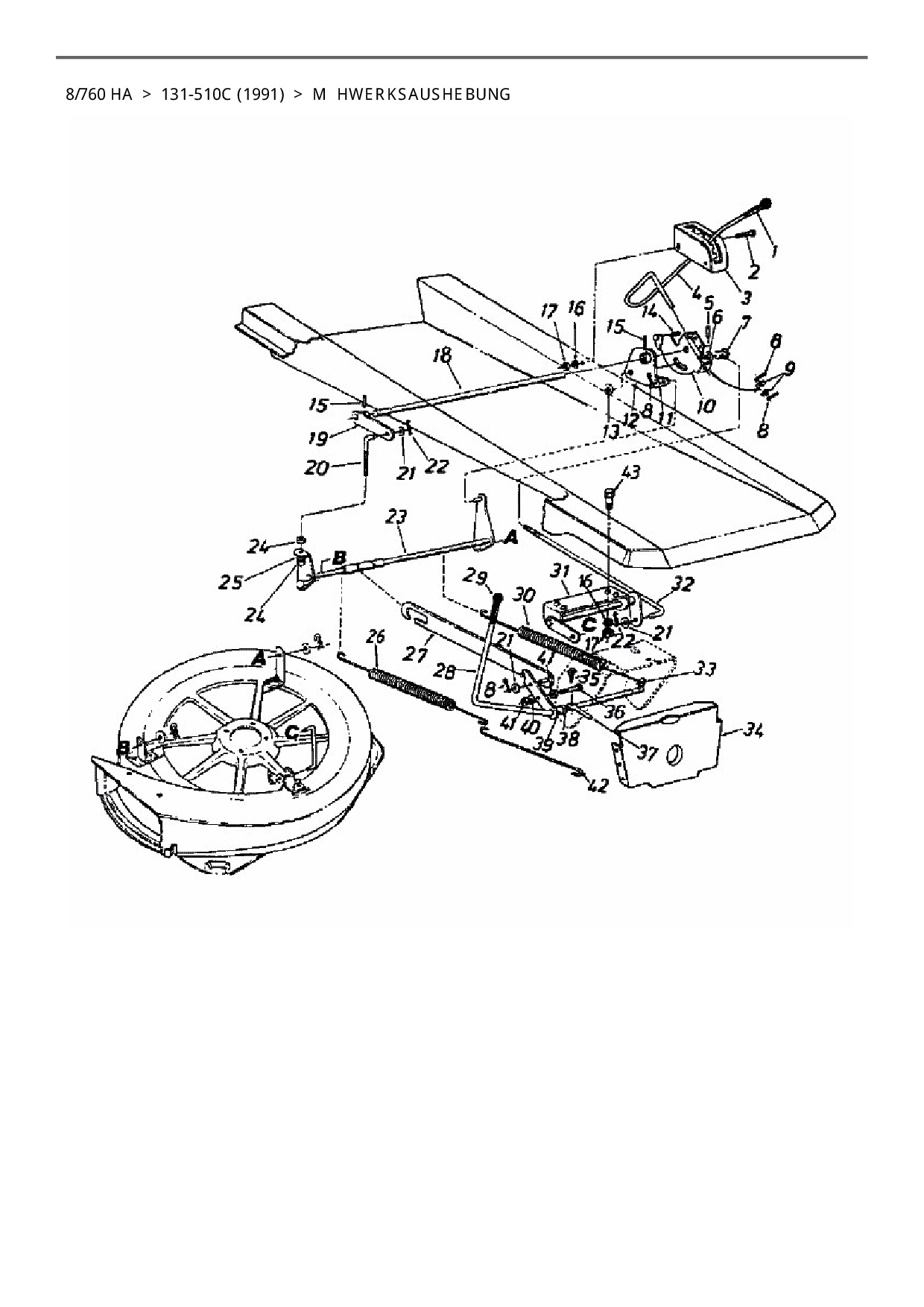 Ersatzteile für Rasentraktor Columbia 8/760 HA aus der Zeichnung Mähwerksaushebung: