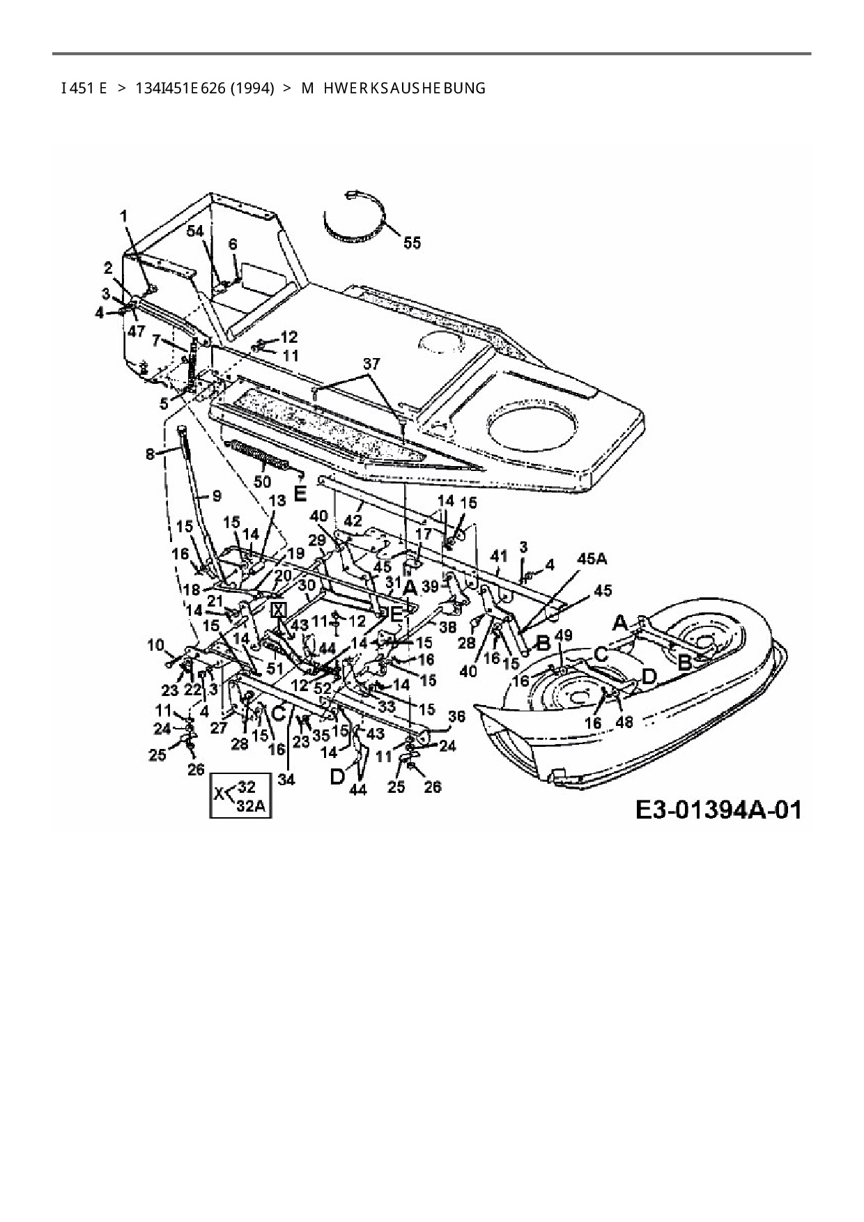 Ersatzteile für Rasentraktor Columbia I 451 E aus der Zeichnung Mähwerksaushebung: