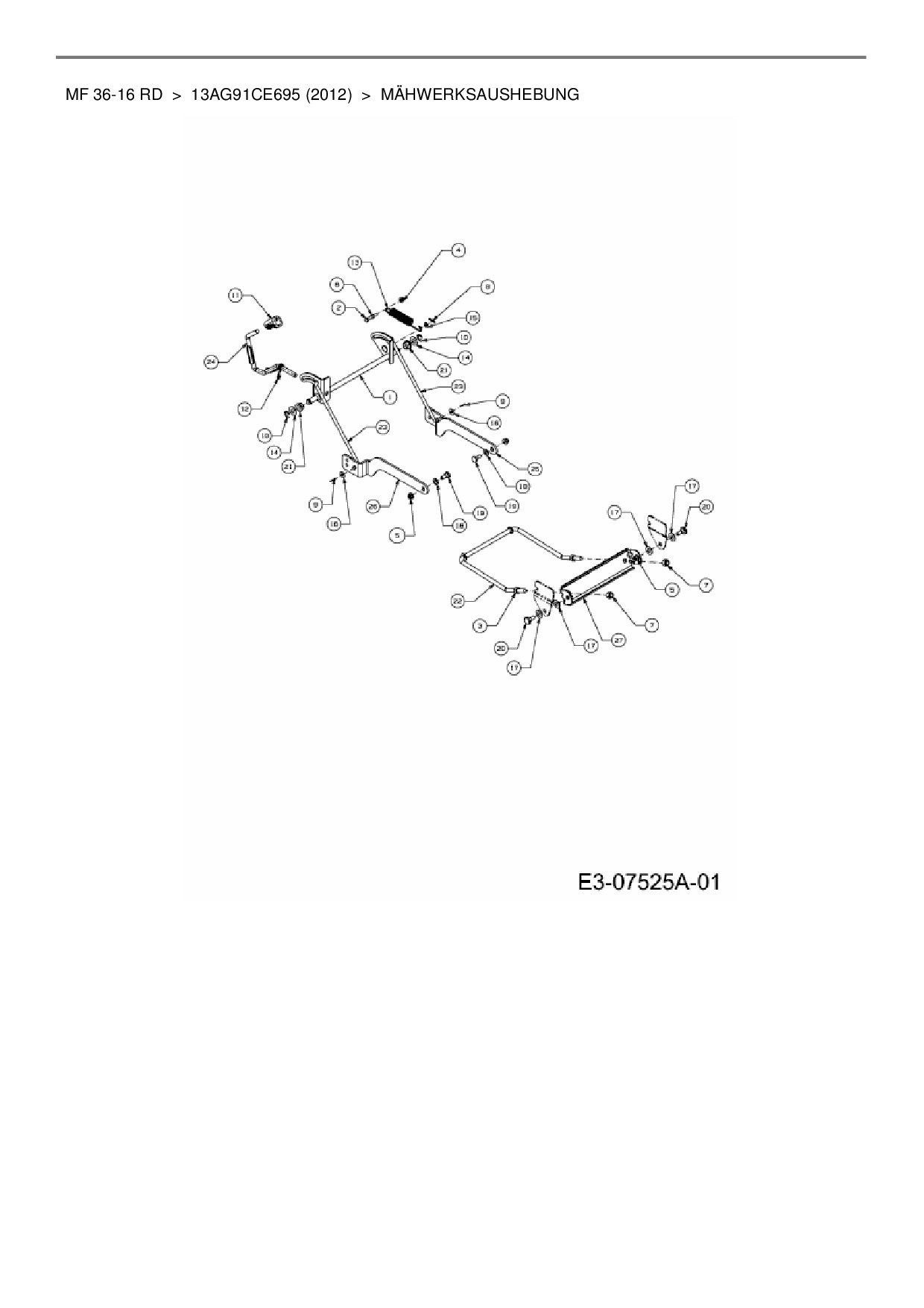 Ersatzteile für Rasentraktor Massey Ferguson MF 36-16 RD aus der Zeichnung Mähwerksaushebung: