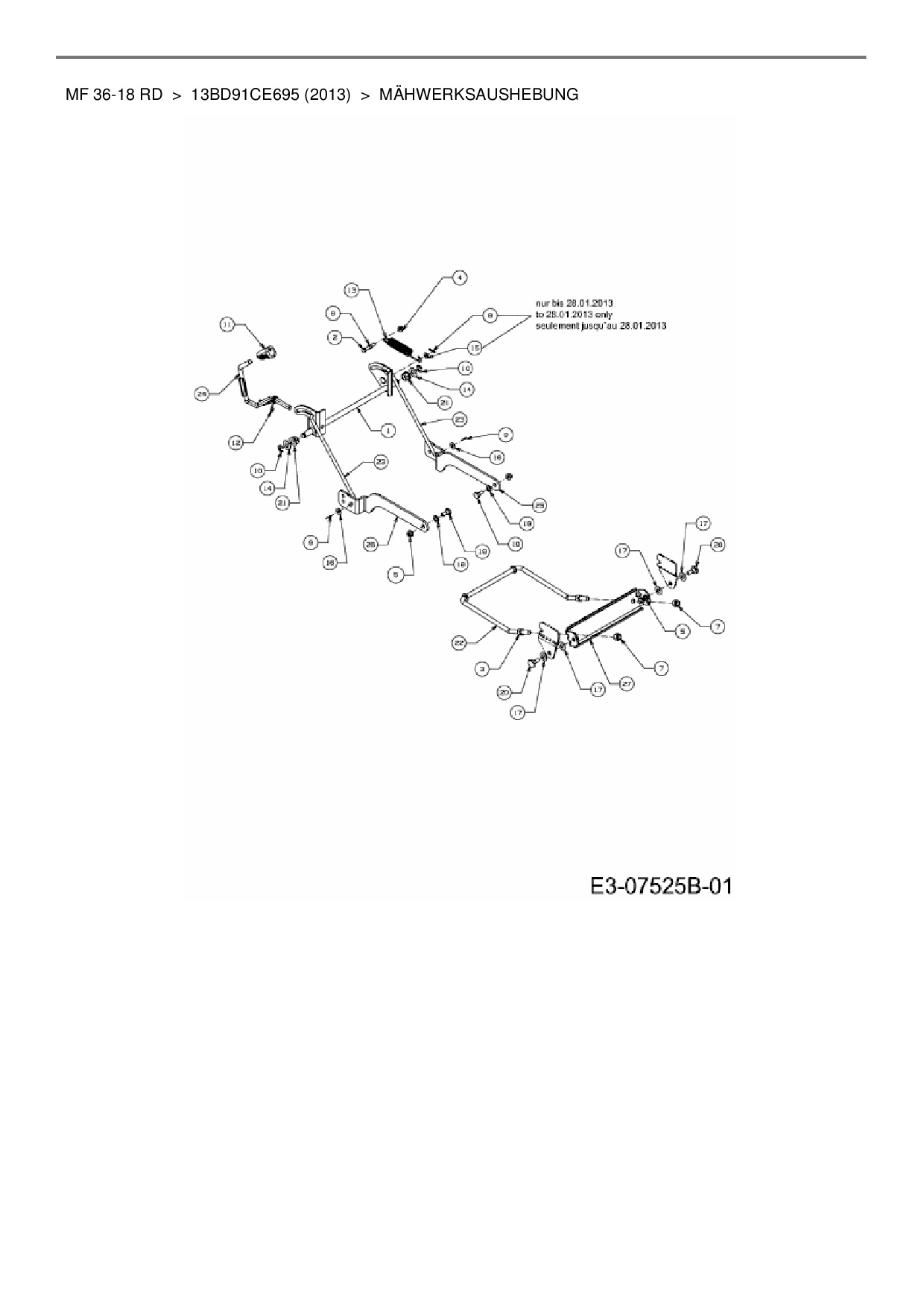 Ersatzteile für Rasentraktor Massey Ferguson MF 36-18 RD aus der Zeichnung Mähwerksaushebung:
