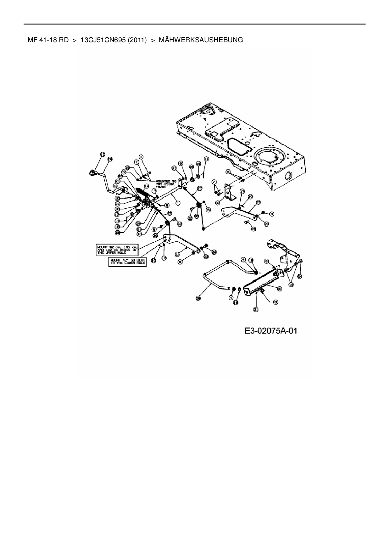 Ersatzteile für Rasentraktor Massey Ferguson MF 41-18 RD aus der Zeichnung Mähwerksaushebung: