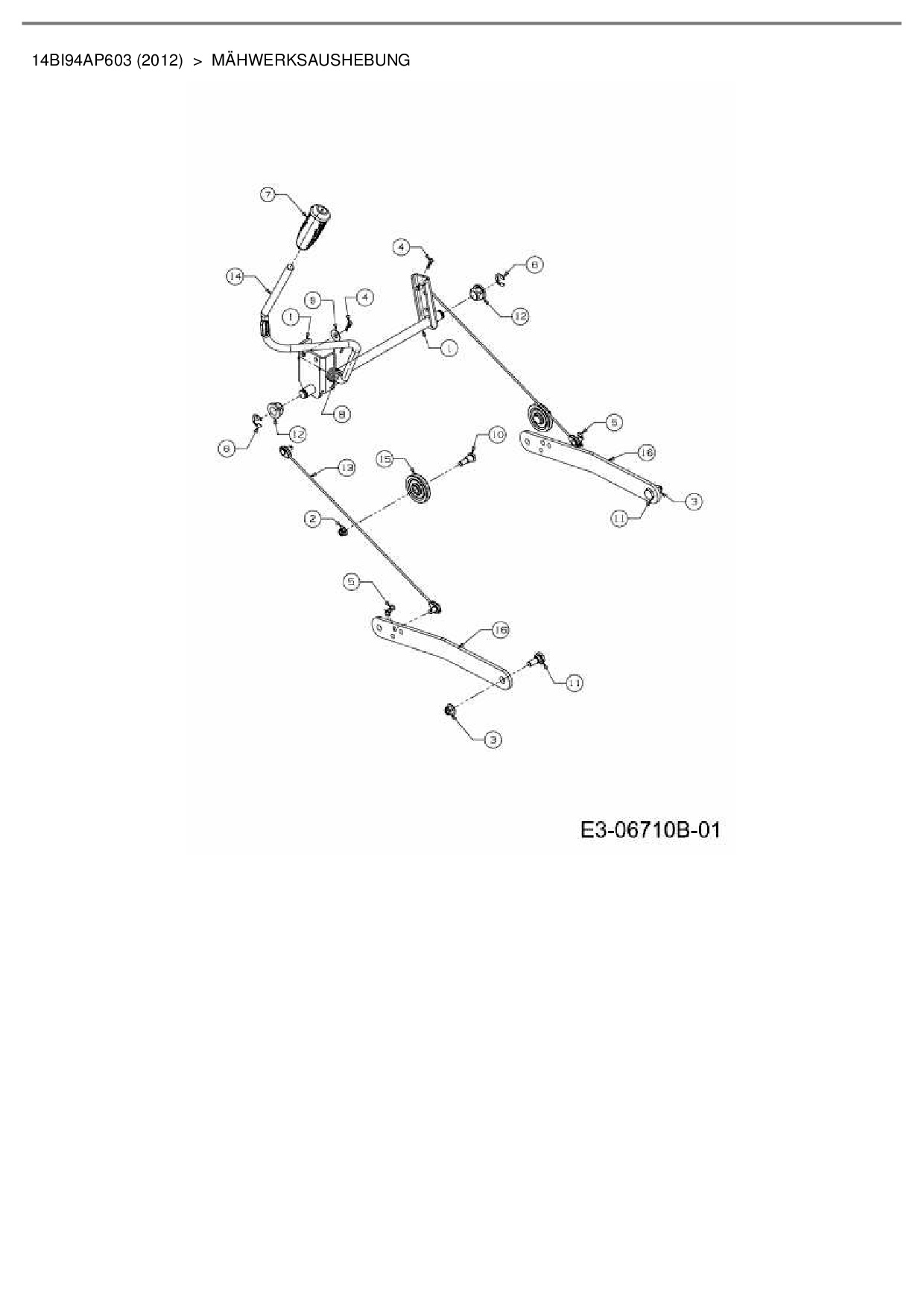 Ersatzteile für Gartentraktor Cub Cadet CC 1224 KHP aus der Zeichnung Mähwerksaushebung: