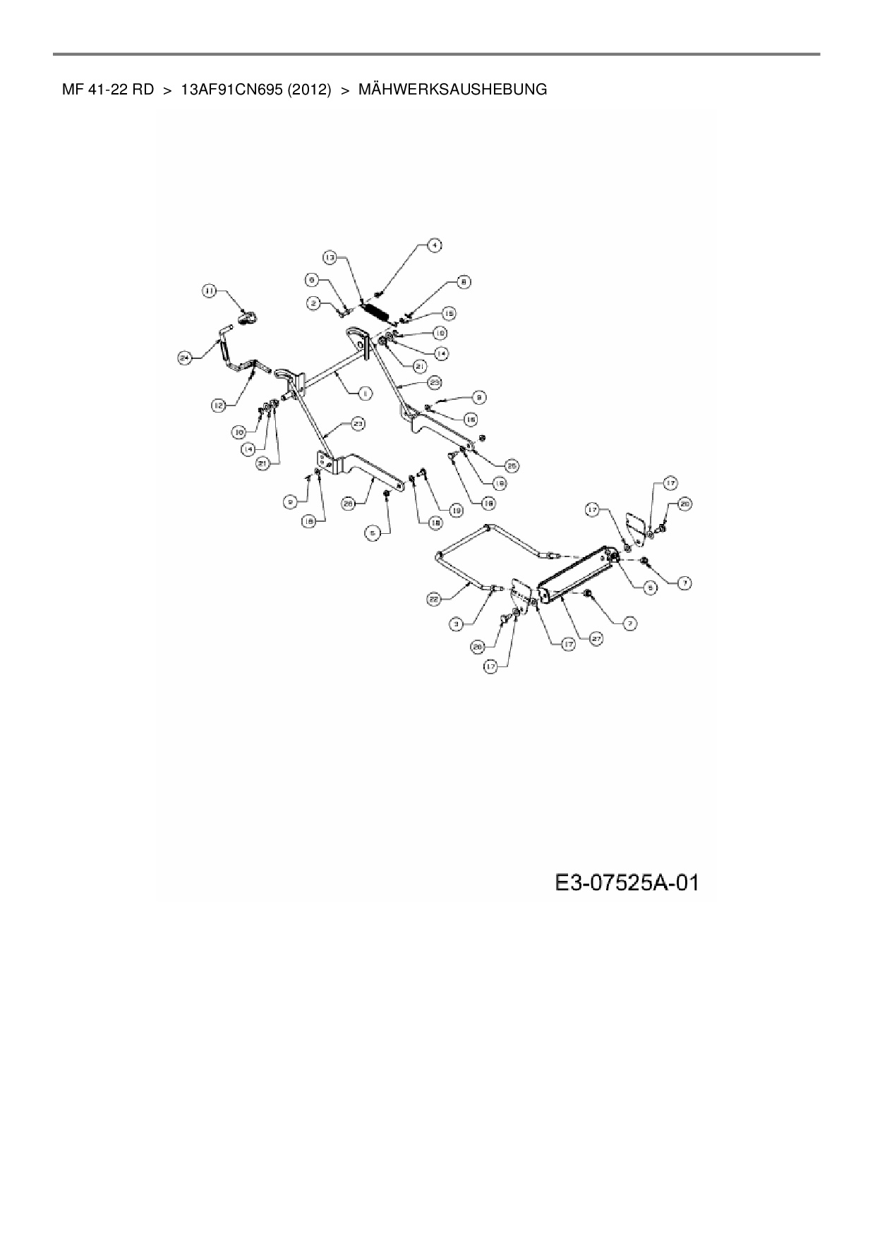 Ersatzteile für Rasentraktor Massey Ferguson MF 41-22 RD aus der Zeichnung Mähwerksaushebung: