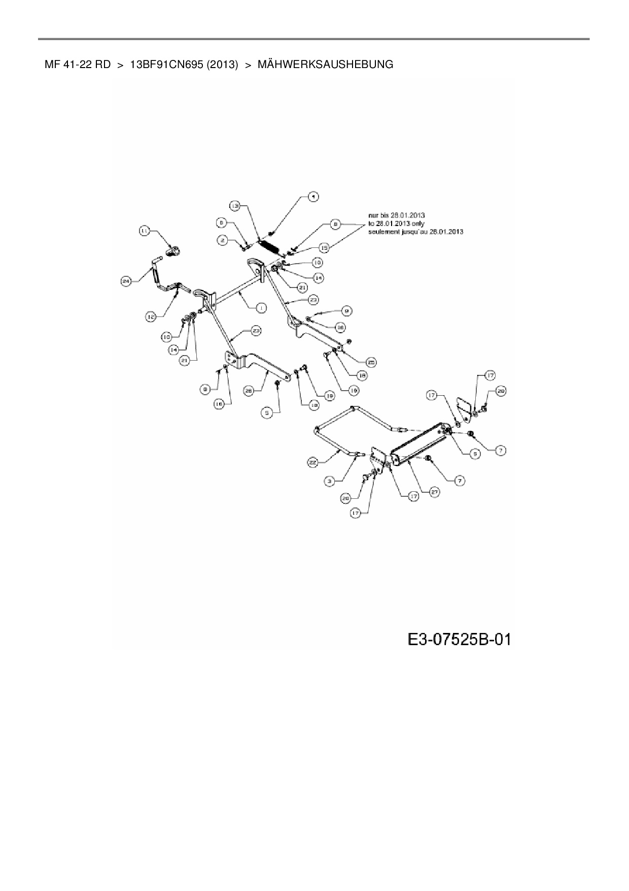 Download Ersatzteil-Zeichnung Massey Ferguson MF 41-22 RD Zeichnung Mähwerksaushebung (PDF-Format)