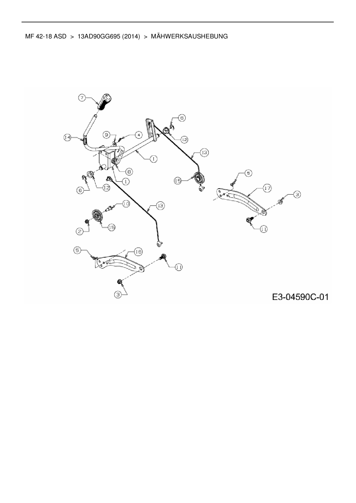 Ersatzteile für Rasentraktor Massey Ferguson MF 42-18 ASD aus der Zeichnung Mähwerksaushebung: