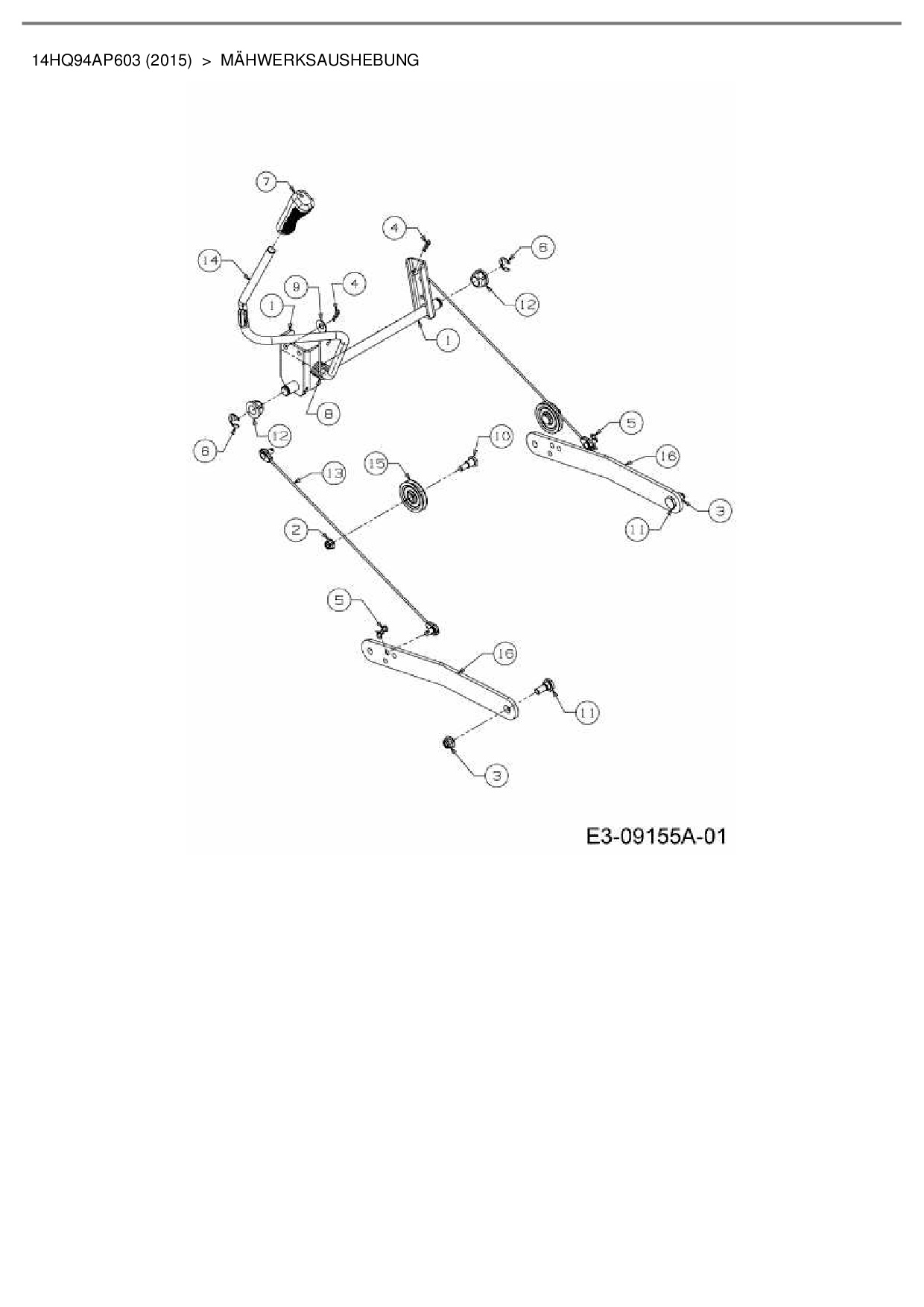 Ersatzteile für Gartentraktor Cub Cadet CC 1224 KHP aus der Zeichnung Mähwerksaushebung: