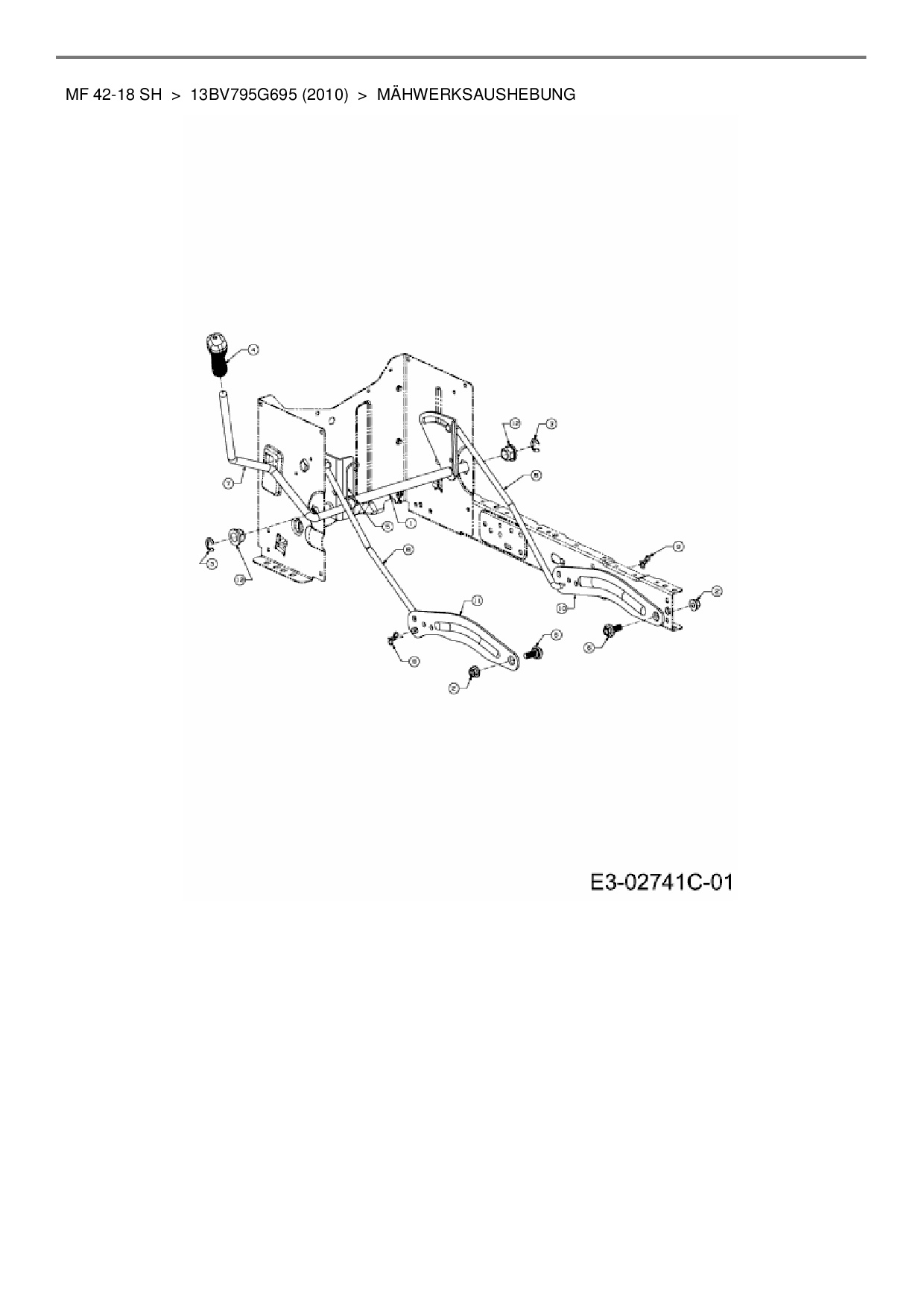 Ersatzteile für Rasentraktor Massey Ferguson MF 42-18 SH aus der Zeichnung Mähwerksaushebung: