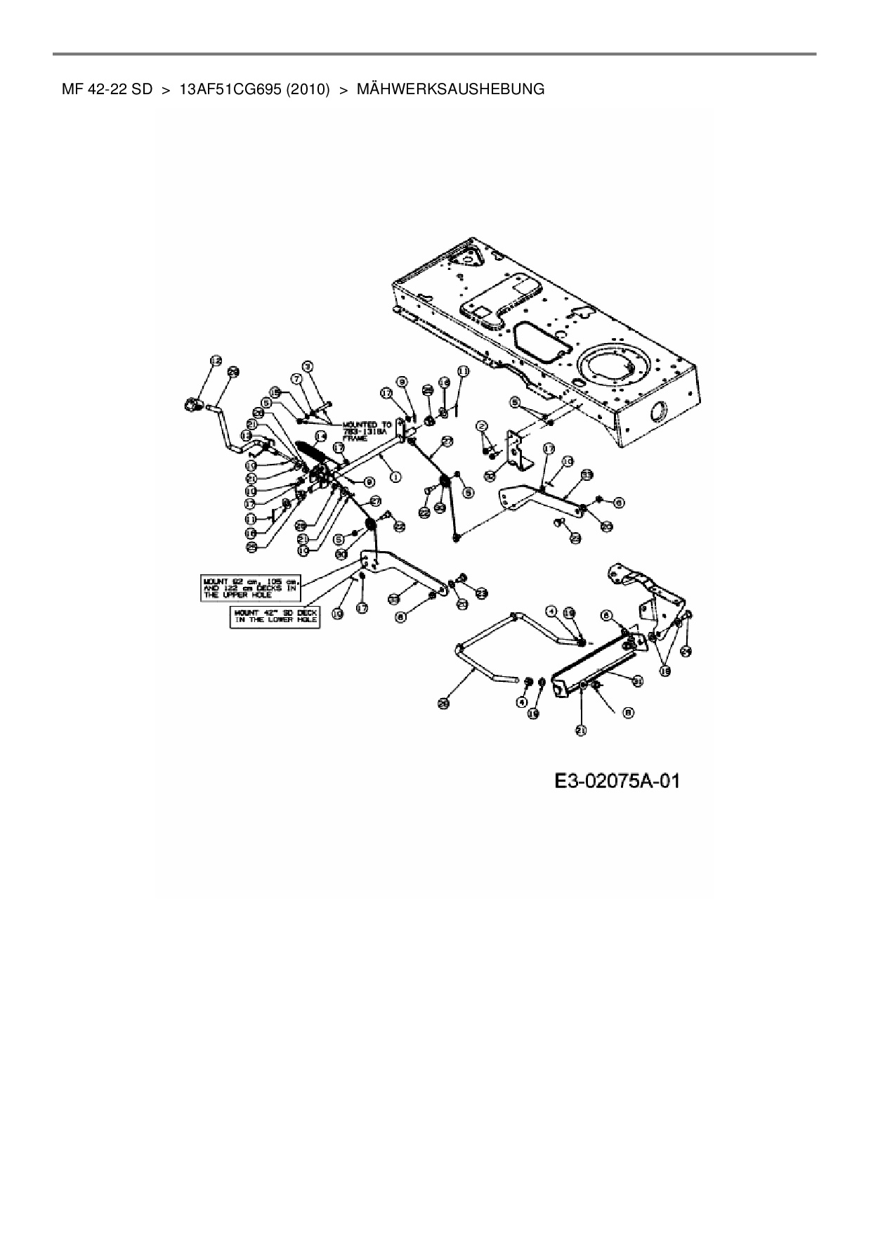 Ersatzteile für Rasentraktor Massey Ferguson MF 42-22 SD aus der Zeichnung Mähwerksaushebung: