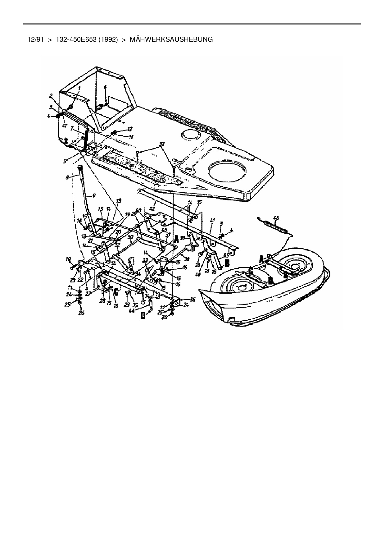 Ersatzteile für Rasentraktor MTD 12/91 aus der Zeichnung Mähwerksaushebung: