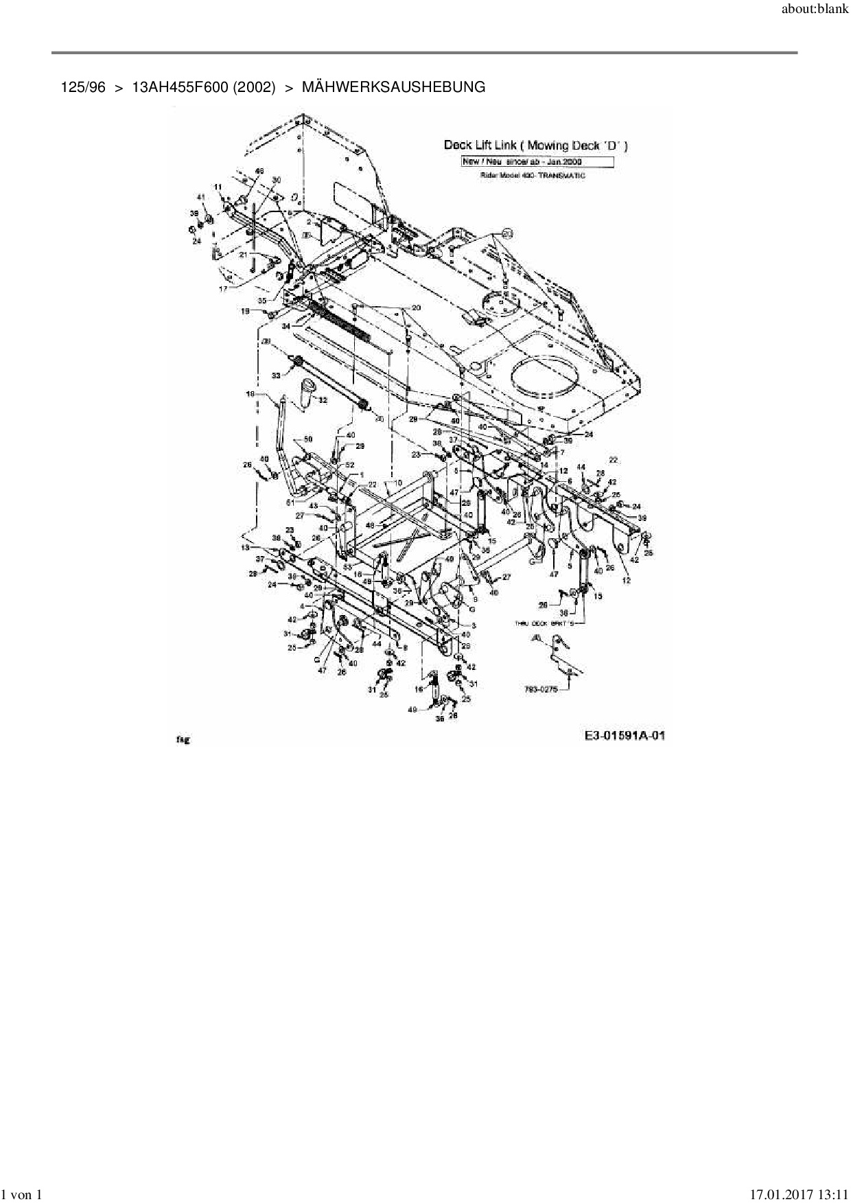 Download Ersatzteil-Zeichnung MTD 125/96 Zeichnung Mähwerksaushebung (PDF-Format)
