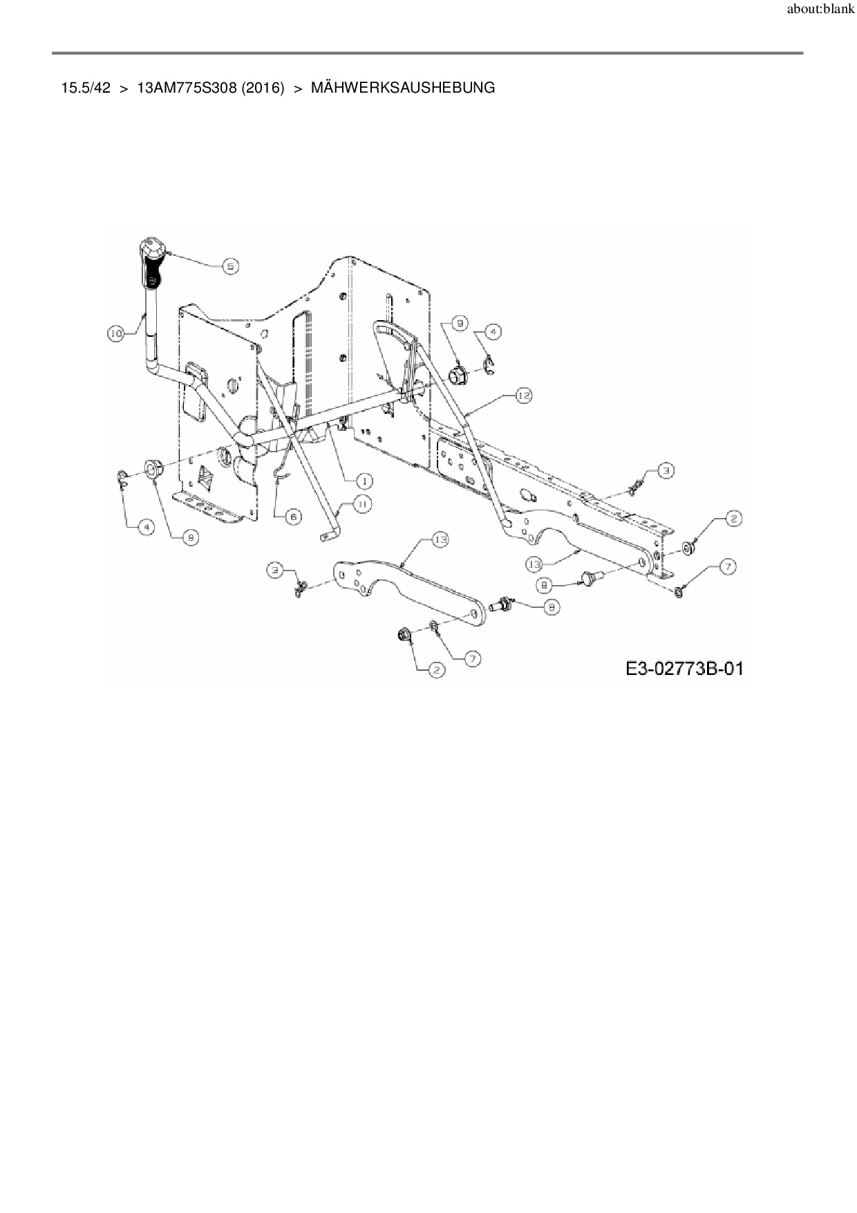Ersatzteile für Rasentraktor MTD 15.5/42 aus der Zeichnung Mähwerksaushebung: