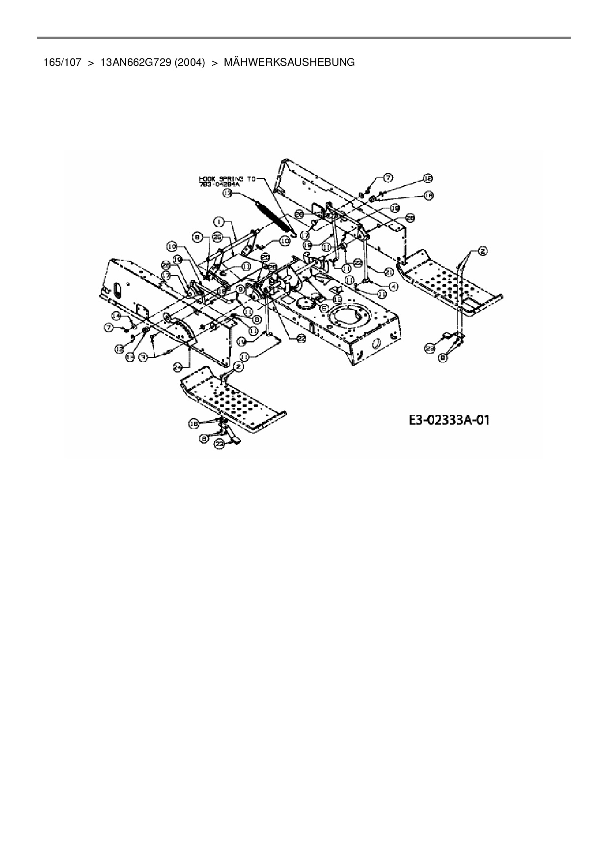 Ersatzteile für Rasentraktor MTD 165/107 aus der Zeichnung Mähwerksaushebung: