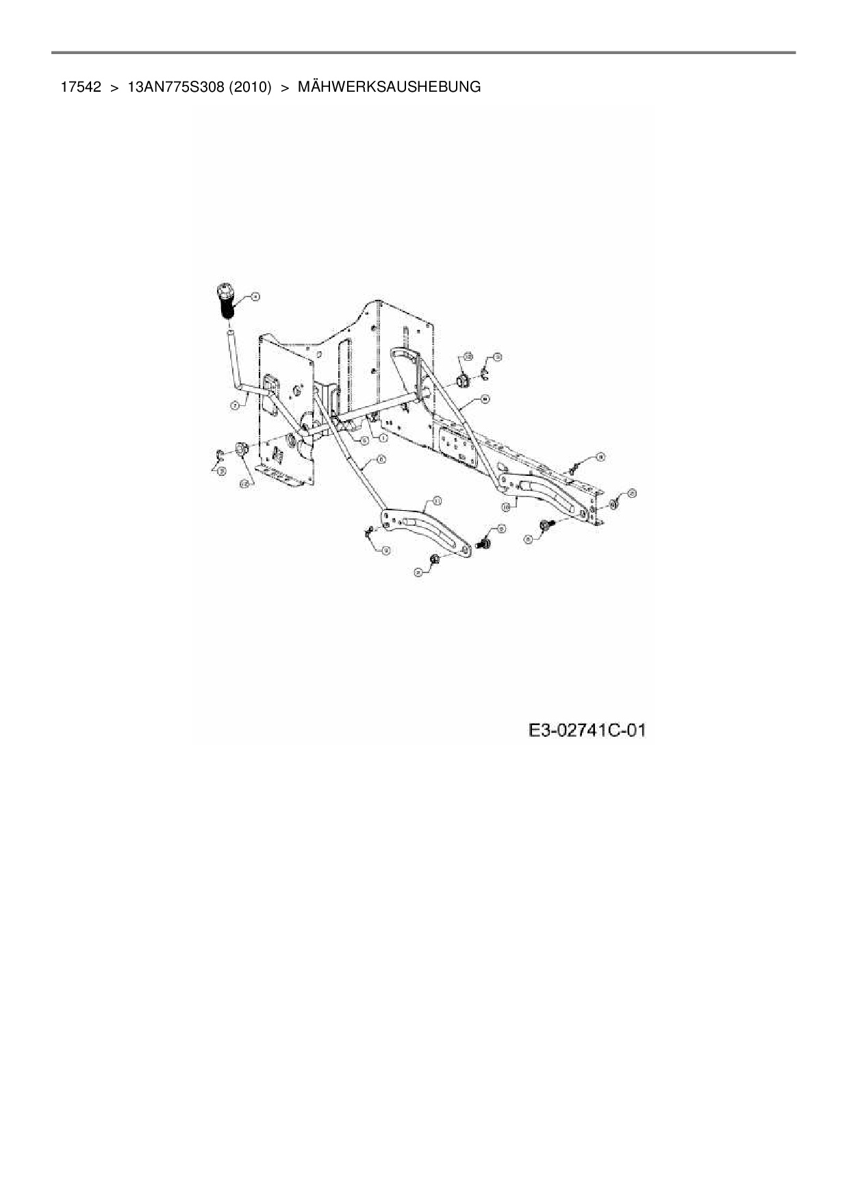Zeichnung für MTD Rasentraktor 17542 mit der Geräte-Artikelnr. 13AN775S308 ab Baujahr 2010: