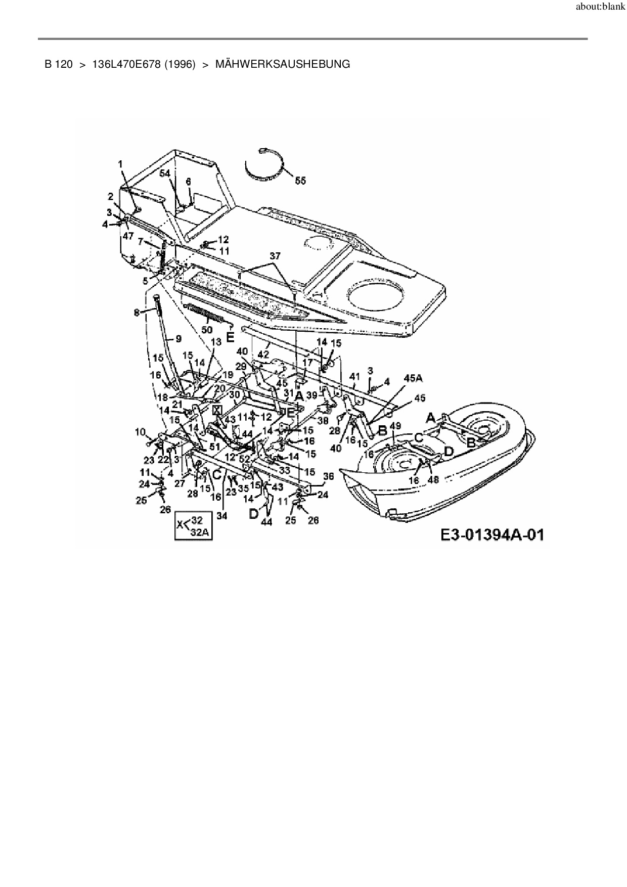 Ersatzteile für Rasentraktor MTD B 120 aus der Zeichnung Mähwerksaushebung: