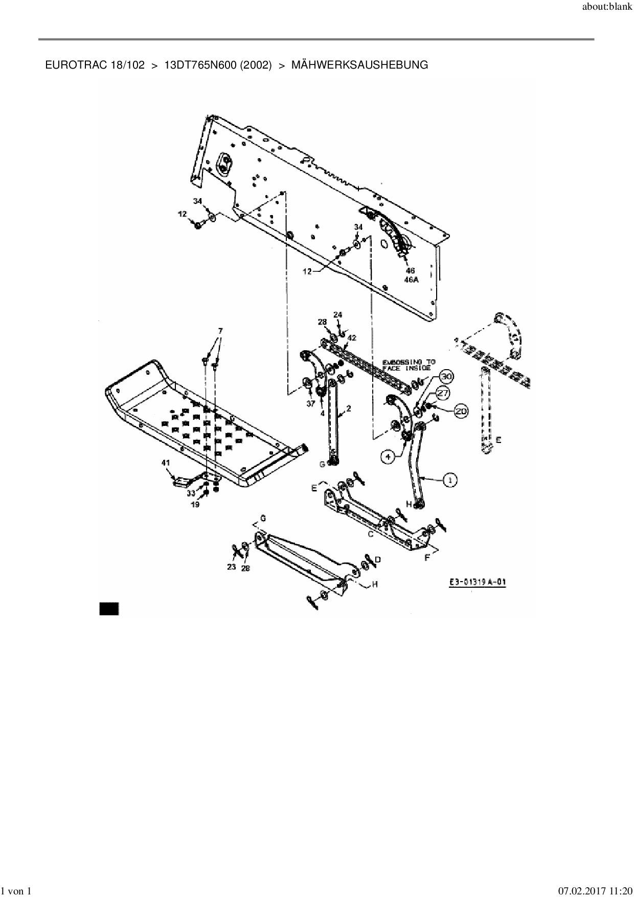 Ersatzteile für Rasentraktor MTD Eurotrac 18/102 aus der Zeichnung Mähwerksaushebung: